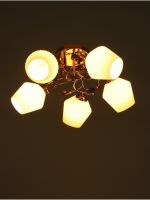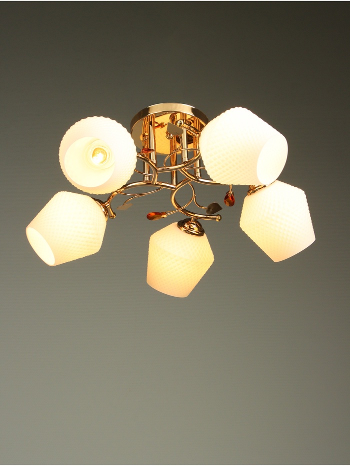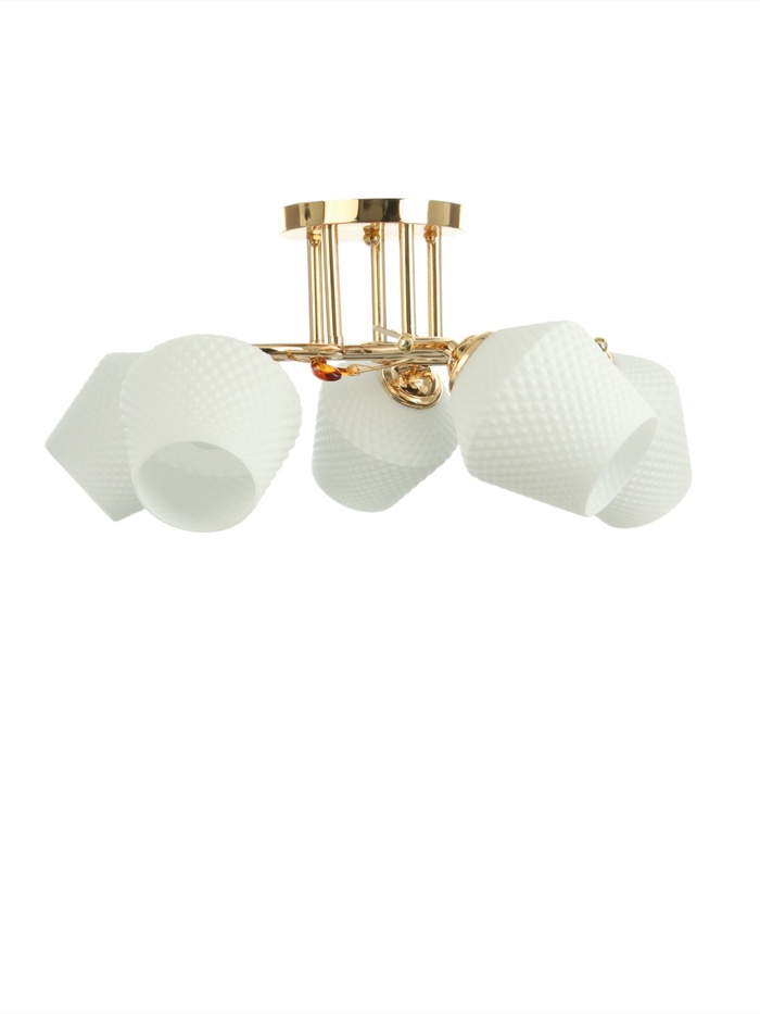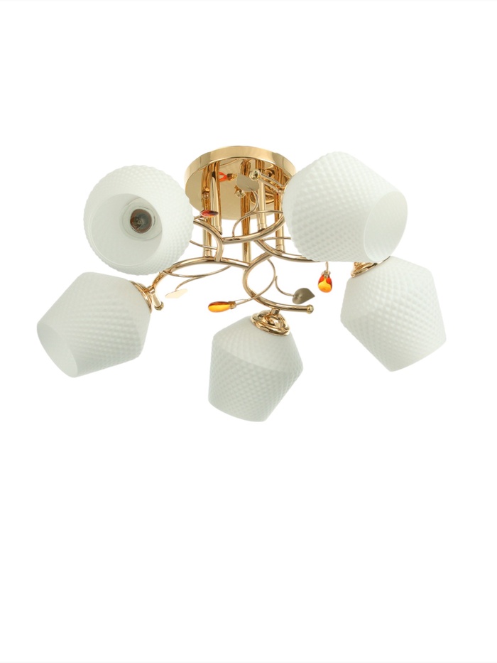 Вид лампы|Накаливания;Количество ламп|5;Цоколь|E27;Длина, см|40;Ширина, см|31;Высота, см|36;Площадь освещения, м²|8;Минимальная высота от потолка, см|36;Максимальная высота от потолка, см|36;Мощность на цоколь, Вт|40;Степень защиты|IP20;Назначение по помещениям|Гостиная;Назначение по помещениям|Спальня;Назначение по помещениям|Кухня;Материал основания|Металл;Цвет основания|Золотой;Тип рассеивателя|Плафон;Тип подвеса|Штанга;Материал рассеивателя|Стекло;Управление светильником|Без выключателя;Подходит для натяжных потолков|Да (при использования светодиодных ламп);Тип крепления|На планку;Форма рассеивателя|Многогранник;Цвет рассеивателя|Белый;Стиль|Классика;Тип источника освещения|Лампа не в комплекте;