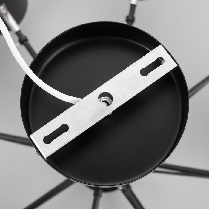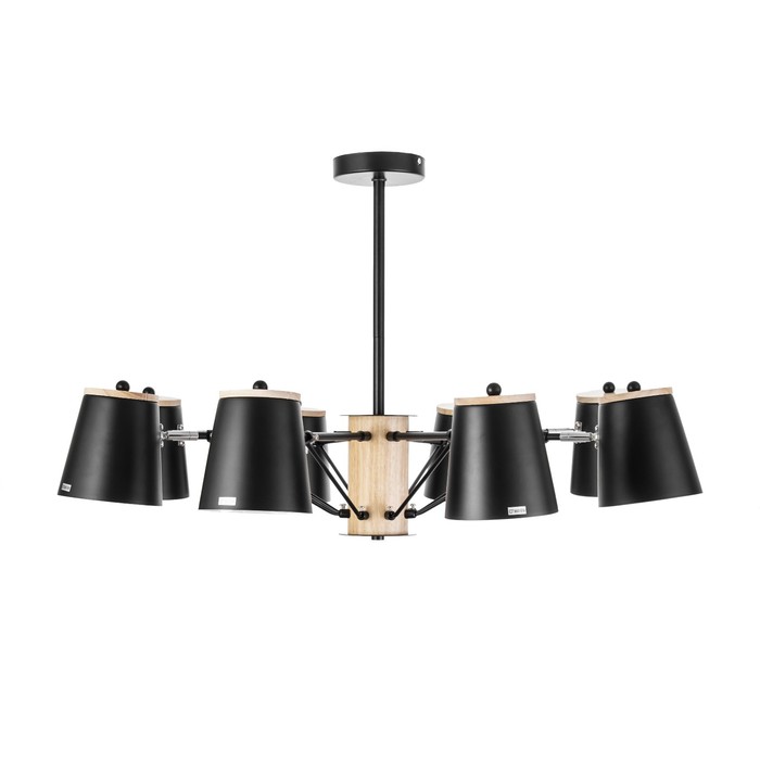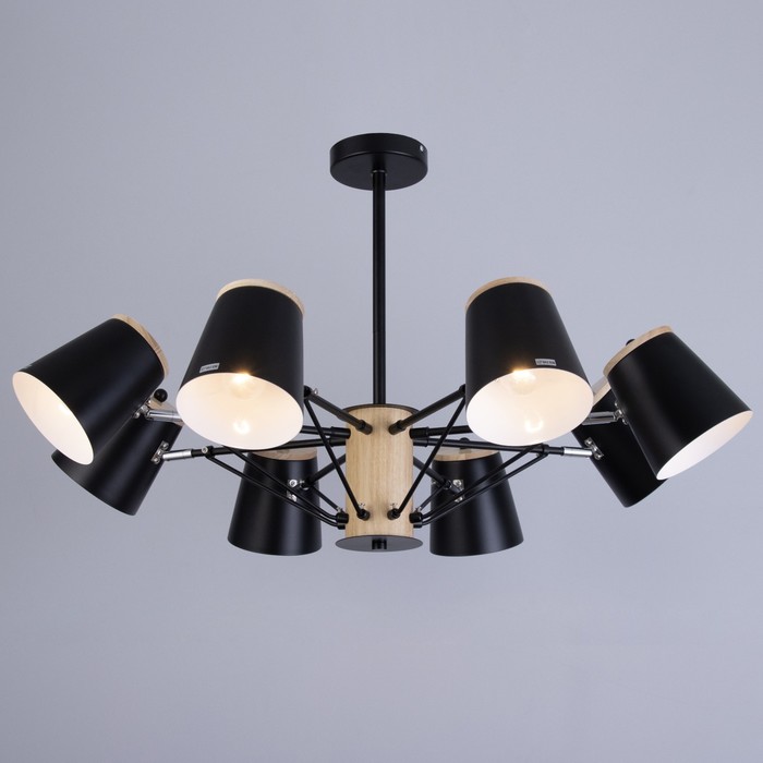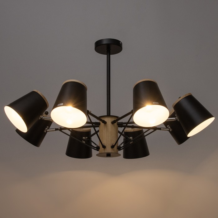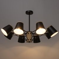 Вид лампы|Накаливания;Количество ламп|8;Стиль|Модерн и хайтек;Цоколь|E27;Длина, см|85;Ширина, см|85;Высота, см|50;Мощность на цоколь, Вт|40;Минимальная высота от потолка, см|50;Максимальная высота от потолка, см|50;Степень защиты|IP20;Назначение по помещениям|Большой зал;Назначение по помещениям|Гостиная;Материал основания|Металл;Цвет основания|Чёрный;Тип рассеивателя|Плафон;Тип подвеса|Штанга;Материал рассеивателя|Металл;Управление светильником|Без пульта;Подходит для натяжных потолков|Да (при использования светодиодных ламп);Тип крепления|На планку;Форма рассеивателя|Конусный;Цвет рассеивателя|Чёрный;Стиль|Лофт;Тип источника освещения|Лампа не в комплекте;