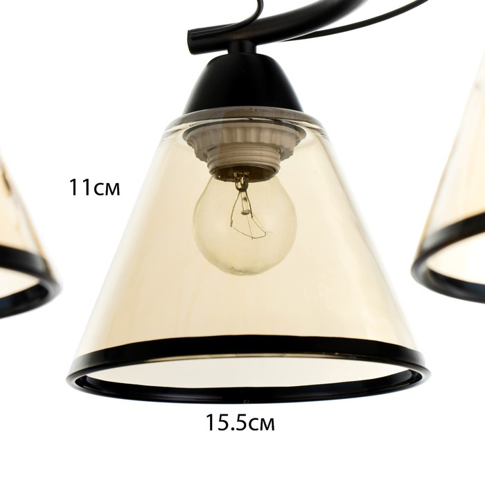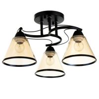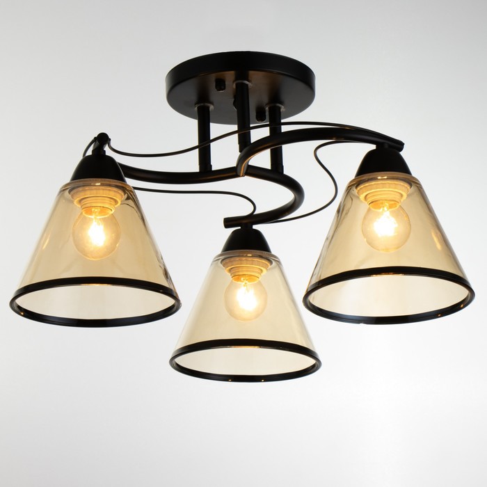 Вид лампы|Накаливания;Количество ламп|3;Стиль|Еврокаркас;Цоколь|E27;Длина, см|43;Ширина, см|43;Высота, см|25;Площадь освещения, м²|6;Мощность на цоколь, Вт|40;Степень защиты|IP20;Назначение по помещениям|Спальня;Назначение по помещениям|Прихожая;Назначение по помещениям|Гостиная;Назначение по помещениям|Кухня;Материал основания|Металл;Цвет основания|Чёрный;Тип рассеивателя|Плафон;Тип подвеса|Штанга;Оттенок рассеивателя|Цветные;Материал рассеивателя|Стекло;Управление светильником|Без пульта;Подходит для натяжных потолков|Да (при использования светодиодных ламп);Плоская|Нет;Тип крепления|На планку;Форма рассеивателя|Конусный;Направление рассеивателя|Вниз;Цвет рассеивателя|Золотой;Стиль|Минимализм;Тип источника освещения|Лампа не в комплекте;