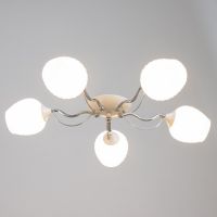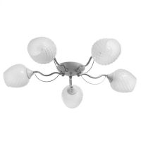Вид лампы|Накаливания;Количество ламп|5;Стиль|Эконом;Цоколь|E27;Длина, см|49;Ширина, см|49;Высота, см|18;Площадь освещения, м²|10;Мощность на цоколь, Вт|40;Степень защиты|IP20;Назначение по помещениям|Гостиная;Назначение по помещениям|Спальня;Назначение по помещениям|Кухня;Материал основания|Металл;Цвет основания|Белый;Цвет основания|Хром;Тип рассеивателя|Плафон;Тип подвеса|Без подвеса (потолочный);Оттенок рассеивателя|Светлые тона;Материал рассеивателя|Стекло;Управление светильником|Без пульта;Подходит для натяжных потолков|Да (при использования светодиодных ламп);Плоская|Нет;Тип крепления|На планку;Форма рассеивателя|Овал;Направление рассеивателя|В стороны;Цвет рассеивателя|Белый;Стиль|Минимализм;Тип источника освещения|Лампа не в комплекте;