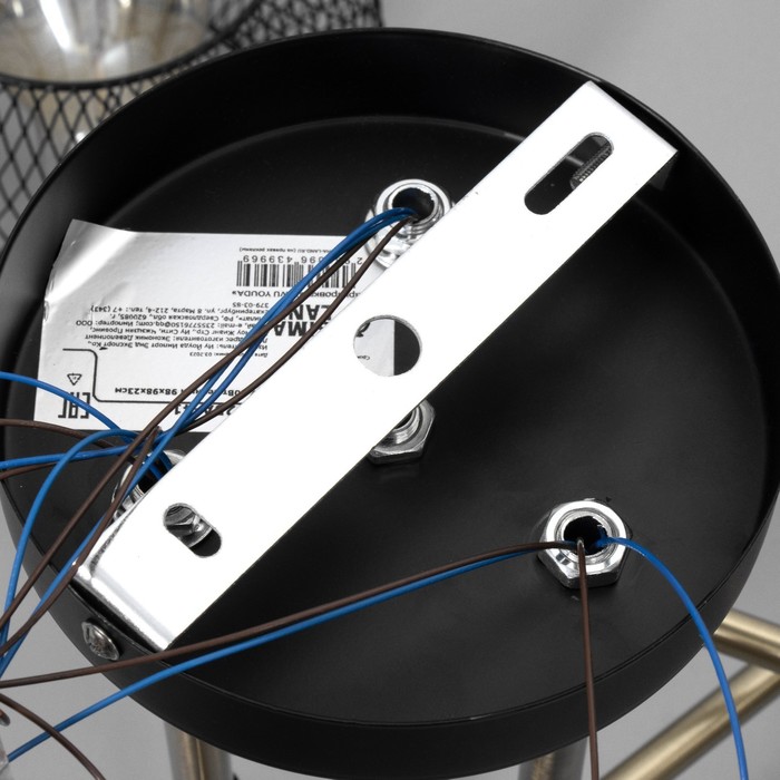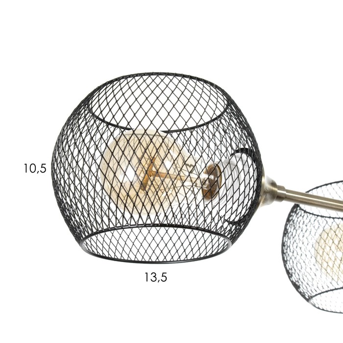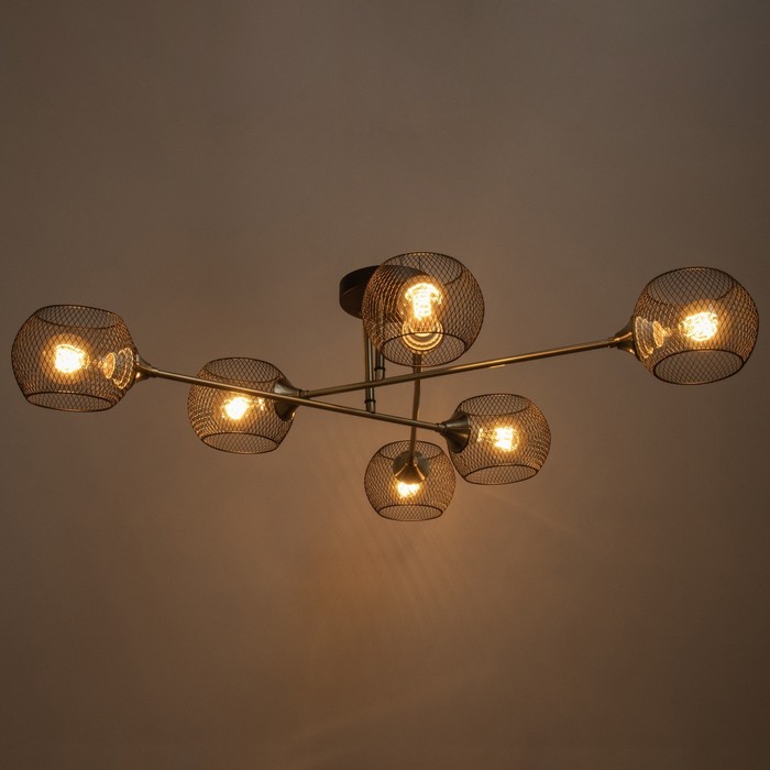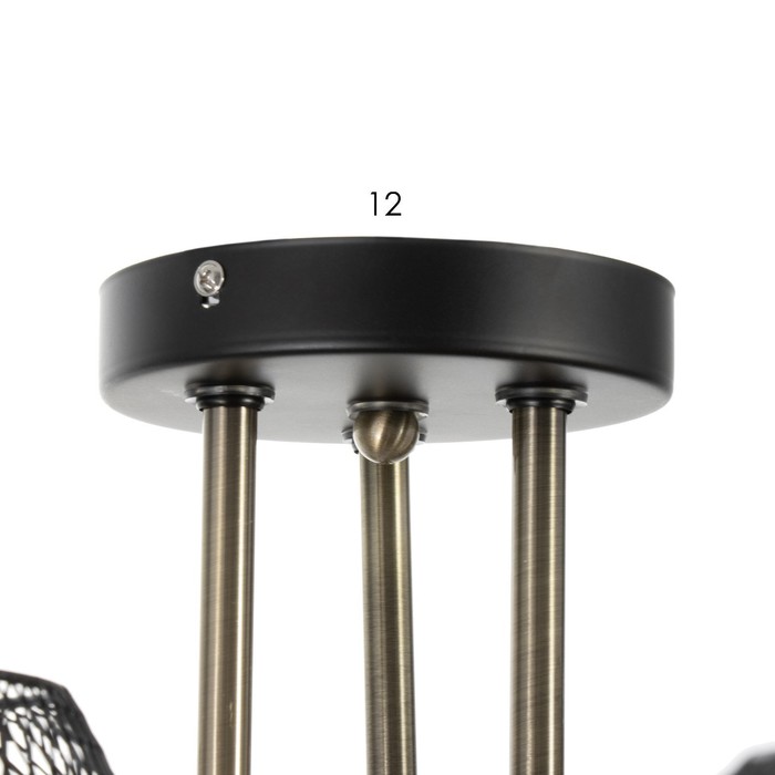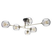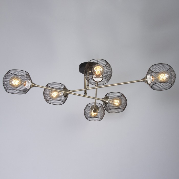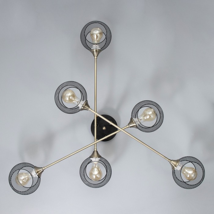 Вид лампы|Накаливания;Количество ламп|6;Стиль|Модерн и хайтек;Цоколь|E27;Длина, см|98;Ширина, см|98;Высота, см|23;Площадь освещения, м²|18;Минимальная высота от потолка, см|23;Максимальная высота от потолка, см|23;Мощность на цоколь, Вт|40;Степень защиты|IP20;Назначение по помещениям|Гостиная;Назначение по помещениям|Большой зал;Назначение по помещениям|Спальня;Материал основания|Металл;Цвет основания|Золотой;Цвет основания|Чёрный;Тип рассеивателя|Плафон;Тип подвеса|Штанга;Форма|Реечная;Материал рассеивателя|Металл;Управление светильником|Без пульта;Подходит для натяжных потолков|Да (при использования светодиодных ламп);Тип крепления|На планку;Форма рассеивателя|Полушар;Цвет рассеивателя|Чёрный;Стиль|Лофт;Тип источника освещения|Лампа не в комплекте;