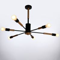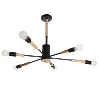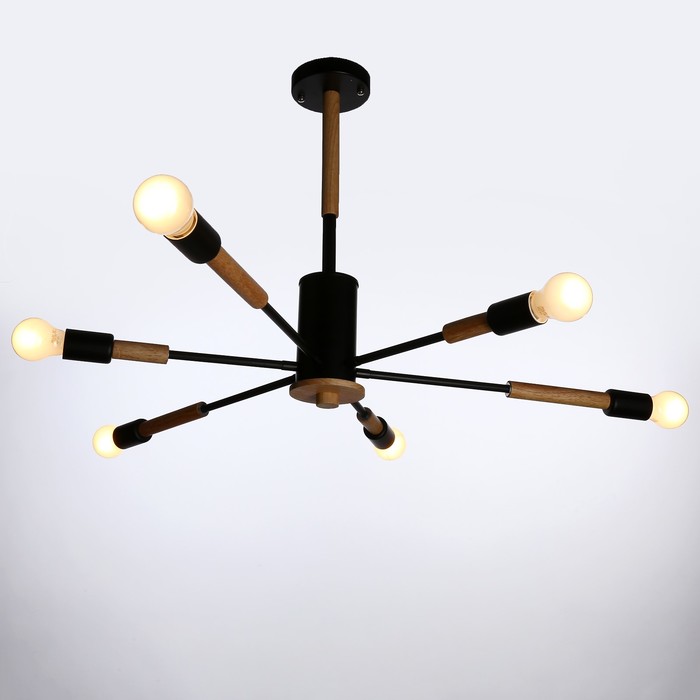 Свет, который формирует пространство. Потолочный светильник с шестью лампами, дерево и металл, чёрный, E27 — крупногабаритное решение для гостиной, кухни или спальни до 12 м?. Это не просто освещение, а архитектурная деталь, задающая ритм и объём в современном интерьере.