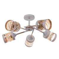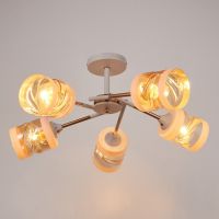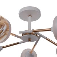 Вид лампы|Накаливания;Количество ламп|5;Цоколь|E27;Длина, см|37;Ширина, см|38;Высота, см|16;Площадь освещения, м²|5;Минимальная высота от потолка, см|16;Максимальная высота от потолка, см|16;Мощность на цоколь, Вт|40;Степень защиты|IP20;Назначение по помещениям|Спальня;Назначение по помещениям|Гостиная;Назначение по помещениям|Прихожая;Назначение по помещениям|Кухня;Материал основания|Металл;Цвет основания|Белый;Цвет основания|Золотой;Тип рассеивателя|Плафон;Тип подвеса|Штанга;Оттенок рассеивателя|Цветные;Форма|Круглая;Материал рассеивателя|Стекло;Управление светильником|Без пульта;Подходит для натяжных потолков|Да (при использования светодиодных ламп);Плоская|Нет;Тип крепления|На планку;Форма рассеивателя|Цилиндр;Направление рассеивателя|В стороны;Цвет рассеивателя|Белый;Стиль|Современный;Стиль|Модерн;Тип источника освещения|Лампа не в комплекте;