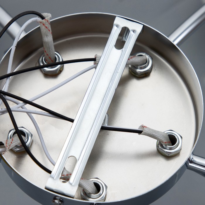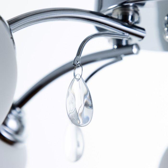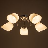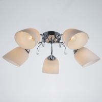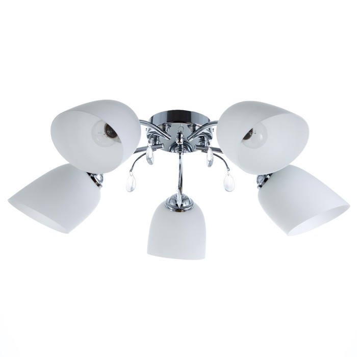 Вид лампы|Накаливания;Количество ламп|5;Стиль|Эконом;Цоколь|E27;Длина, см|55;Ширина, см|55;Высота, см|36;Площадь освещения, м²|5;Мощность на цоколь, Вт|40;Степень защиты|IP20;Назначение по помещениям|Гостиная;Назначение по помещениям|Спальня;Назначение по помещениям|Кухня;Материал основания|Металл;Цвет основания|Хром;Тип рассеивателя|Плафон;Тип подвеса|Без подвеса (потолочный);Оттенок рассеивателя|Светлые тона;Материал рассеивателя|Стекло;Управление светильником|Без пульта;Подходит для натяжных потолков|Да (при использования светодиодных ламп);Плоская|Нет;Тип крепления|На планку;Форма рассеивателя|Конусный;Направление рассеивателя|Вниз;Цвет рассеивателя|Белый;Стиль|Классика;Тип источника освещения|Лампа не в комплекте;