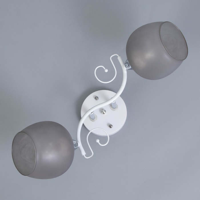 Вид лампы|Накаливания;Количество ламп|2;Стиль|Эконом;Цоколь|E27;Длина, см|47;Ширина, см|15.5;Высота, см|24;Минимальная высота от потолка, см|24;Максимальная высота от потолка, см|24;Мощность на цоколь, Вт|60;Степень защиты|IP20;Назначение по помещениям|Спальня;Назначение по помещениям|Прихожая;Назначение по помещениям|Кухня;Материал основания|Металл;Цвет основания|Белый;Тип рассеивателя|Плафон;Тип подвеса|Без подвеса (потолочный);Оттенок рассеивателя|Тёмные тона;Материал рассеивателя|Стекло;Управление светильником|Без выключателя;Подходит для натяжных потолков|Да (при использования светодиодных ламп);Плоская|Нет;Тип крепления|На планку;Форма рассеивателя|Полушар;Направление рассеивателя|Вниз;Цвет рассеивателя|Серый;Стиль|Классика;Тип источника освещения|Лампа не в комплекте;