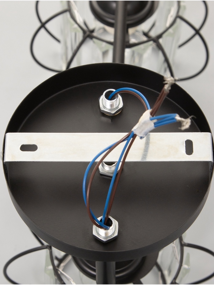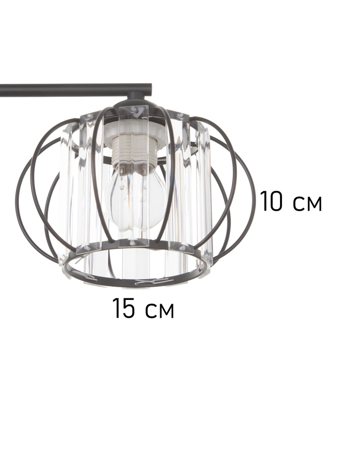 - Универсальный стиль: Черное металлическое основание и фигурные стеклянные плафоны сочетают элементы неоклассики и индустриального стиля. Прозрачное и черное стекло создает интересную игру света.