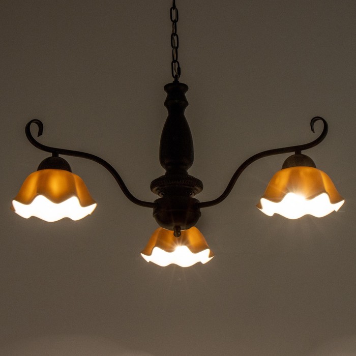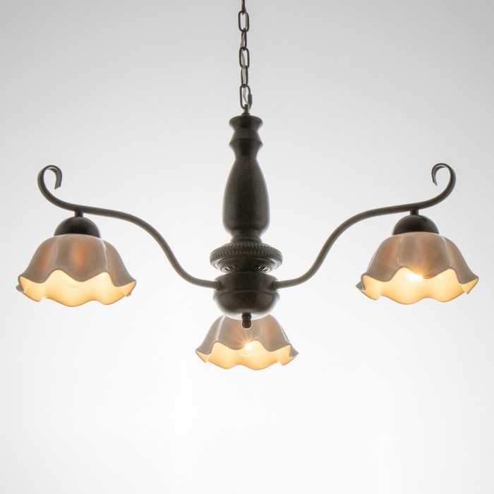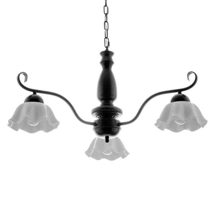 Вид лампы|Накаливания;Количество ламп|3;Стиль|Классика;Цоколь|E27;Длина, см|69;Ширина, см|69;Высота, см|37;Площадь освещения, м²|6;Минимальная высота от потолка, см|37;Мощность на цоколь, Вт|40;Максимальная высота от потолка, см|72;Степень защиты|IP20;Назначение по помещениям|Кухня;Назначение по помещениям|Прихожая;Назначение по помещениям|Гостиная;Назначение по помещениям|Спальня;Материал основания|Металл;Цвет основания|Чёрный;Тип рассеивателя|Плафон;Тип подвеса|Цепь;Оттенок рассеивателя|Светлые тона;Материал рассеивателя|Пластик;Управление светильником|Без пульта;Подходит для натяжных потолков|Да (при использования светодиодных ламп);Плоская|Нет;Тип крепления|На планку;Форма рассеивателя|Нестандартная;Направление рассеивателя|Вниз;Цвет рассеивателя|Белый;Стиль|Прованс;Стиль|Классика;Тип источника освещения|Лампа не в комплекте;