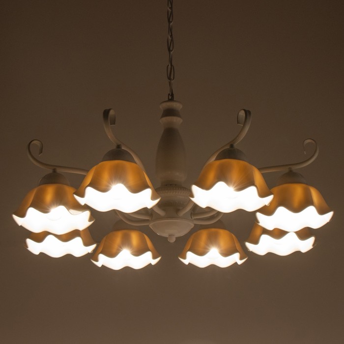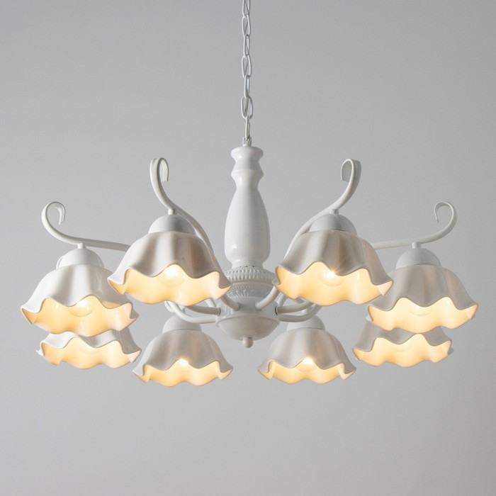 Великолепие классики для просторных помещений! Восьмирожковая люстра в белом исполнении — это масштабный светильник, создающий торжественную атмосферу и обеспечивающий качественное освещение. Модель с восемью плафонами станет центральным элементом интерьера в классическом или прованском стиле.