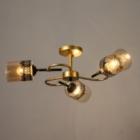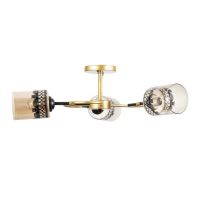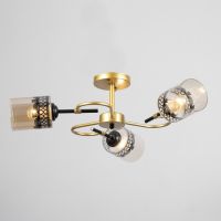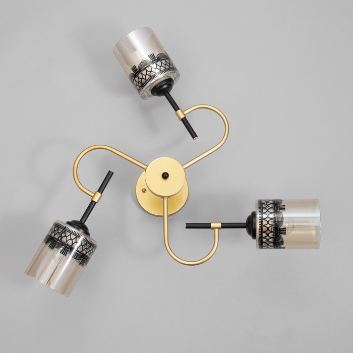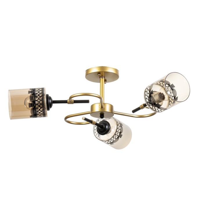 Вид лампы|Накаливания;Количество ламп|3;Стиль|Модерн и хайтек;Цоколь|E27;Длина, см|50;Ширина, см|50;Высота, см|27;Площадь освещения, м²|6;Мощность на цоколь, Вт|40;Максимальная высота от потолка, см|40;Степень защиты|IP20;Назначение по помещениям|Кафе, рестораны;Назначение по помещениям|Гостиная;Назначение по помещениям|Кухня;Назначение по помещениям|Спальня;Назначение по помещениям|Прихожая;Материал основания|Металл;Цвет основания|Чёрный;Цвет основания|Золотой;Тип рассеивателя|Плафон;Тип подвеса|Штанга;Материал рассеивателя|Стекло;Управление светильником|Без пульта;Подходит для натяжных потолков|Да (при использования светодиодных ламп);Тип крепления|На планку;Форма рассеивателя|Цилиндр;Цвет рассеивателя|Медовый;Стиль|Модерн;Стиль|Современный;Тип источника освещения|Лампа не в комплекте;