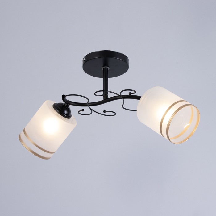 Вид лампы|Накаливания;Количество ламп|2;Стиль|Эконом;Цоколь|E27;Длина, см|47;Высота, см|26;Площадь освещения, м²|4;Минимальная высота от потолка, см|26;Максимальная высота от потолка, см|26;Мощность на цоколь, Вт|40;Степень защиты|IP20;Назначение по помещениям|Спальня;Материал основания|Металл;Цвет основания|Чёрный;Тип рассеивателя|Плафон;Тип подвеса|Штанга;Материал рассеивателя|Стекло;Управление светильником|Без пульта;Подходит для натяжных потолков|Да (при использования светодиодных ламп);Тип крепления|На планку;Форма рассеивателя|Цилиндр;Цвет рассеивателя|Матовый белый;Стиль|Современный;Тип источника освещения|Лампа не в комплекте;
