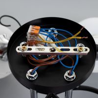 • Комбинированное основание: Сочетание черного и хромированного металла придает светильнику современный динамичный вид. Контраст цветов создает выразительный акцент в интерьере.
