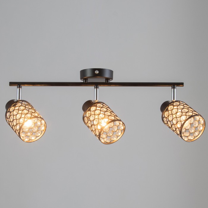 Вид лампы|Накаливания;Количество ламп|3;Стиль|Модерн и хайтек;Цоколь|E14;Длина, см|56;Высота, см|19;Площадь освещения, м²|6;Минимальная высота от потолка, см|19;Максимальная высота от потолка, см|19;Мощность на цоколь, Вт|40;Степень защиты|IP20;Назначение по помещениям|Гостиная;Назначение по помещениям|Лестничный пролёт;Назначение по помещениям|Кафе, рестораны;Назначение по помещениям|Спальня;Назначение по помещениям|Кухня;Назначение по помещениям|Прихожая;Материал основания|Металл;Цвет основания|Чёрный;Тип рассеивателя|Плафон;Тип|Настенно-потолочный;Тип подвеса|Без подвеса (потолочный);Оттенок рассеивателя|Тёмные тона;Материал рассеивателя|Стекло;Управление светильником|Без пульта;Подходит для натяжных потолков|Да (при использования светодиодных ламп);Тип крепления|На планку;Форма рассеивателя|Цилиндр;Направление рассеивателя|Поворотное;Цвет рассеивателя|Чёрный;Стиль|Современный;Стиль|Модерн;Тип источника освещения|Лампа не в комплекте;