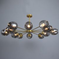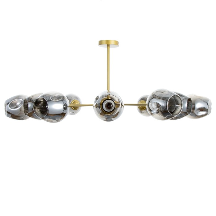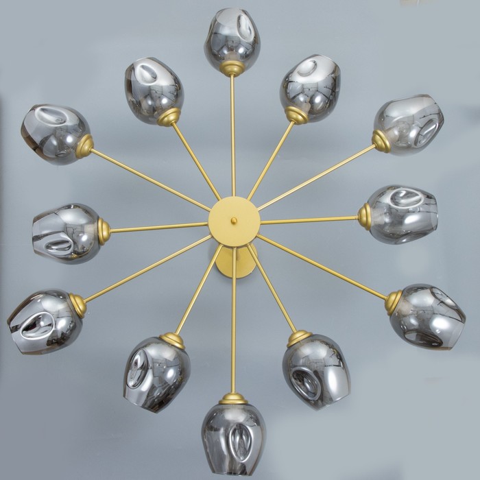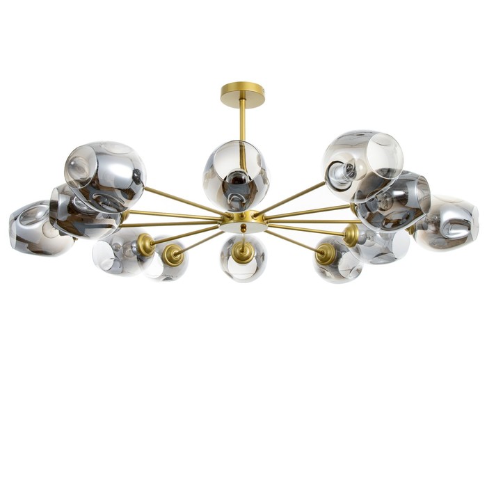 Вид лампы|Накаливания;Количество ламп|12;Стиль|Модерн и хайтек;Цоколь|E27;Длина, см|105;Ширина, см|105;Высота, см|35;Минимальная высота от потолка, см|35;Максимальная высота от потолка, см|35;Площадь освещения, м²|36;Мощность на цоколь, Вт|60;Степень защиты|IP20;Назначение по помещениям|Спальня;Назначение по помещениям|Большой зал;Назначение по помещениям|Гостиная;Материал основания|Металл;Цвет основания|Золотой;Тип рассеивателя|Плафон;Тип подвеса|Штанга;Материал рассеивателя|Стекло;Управление светильником|Без выключателя;Подходит для натяжных потолков|Да (при использования светодиодных ламп);Тип крепления|На планку;Форма рассеивателя|Полушар;Цвет рассеивателя|Тонированный;Стиль|Модерн;Стиль|Современный;Тип источника освещения|Лампа не в комплекте;