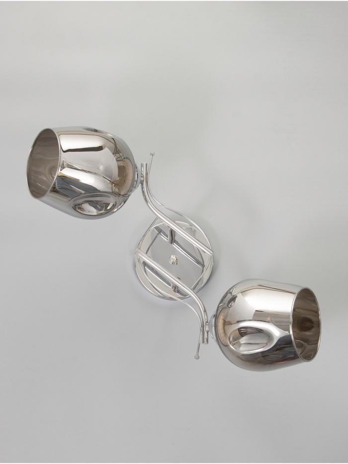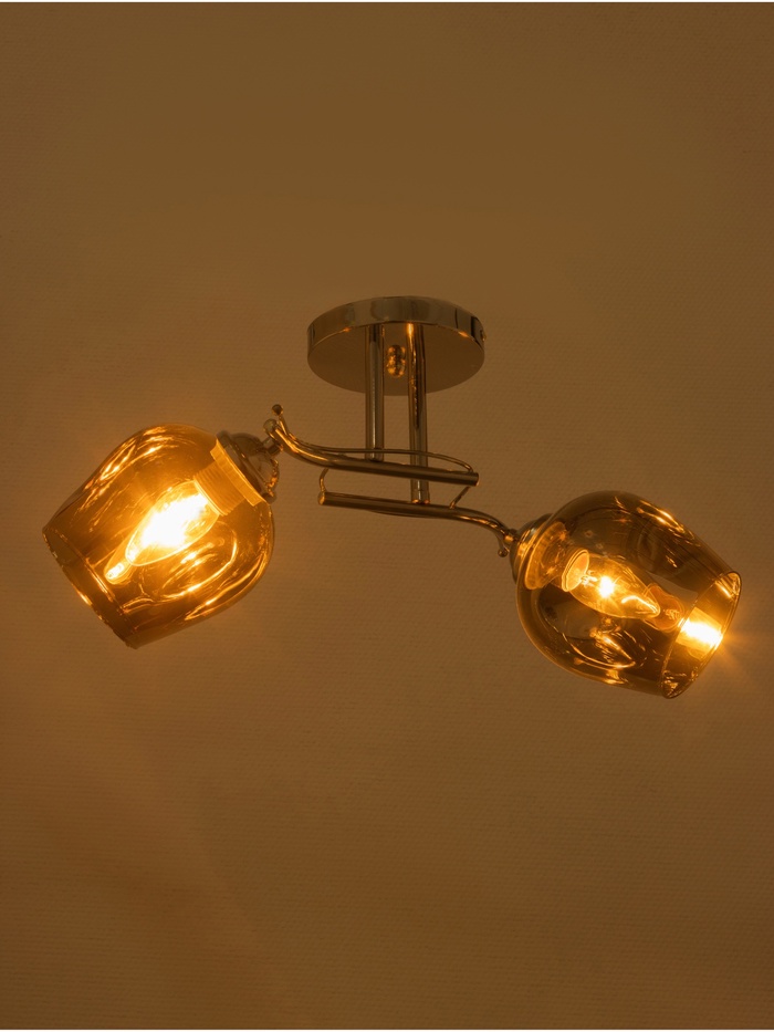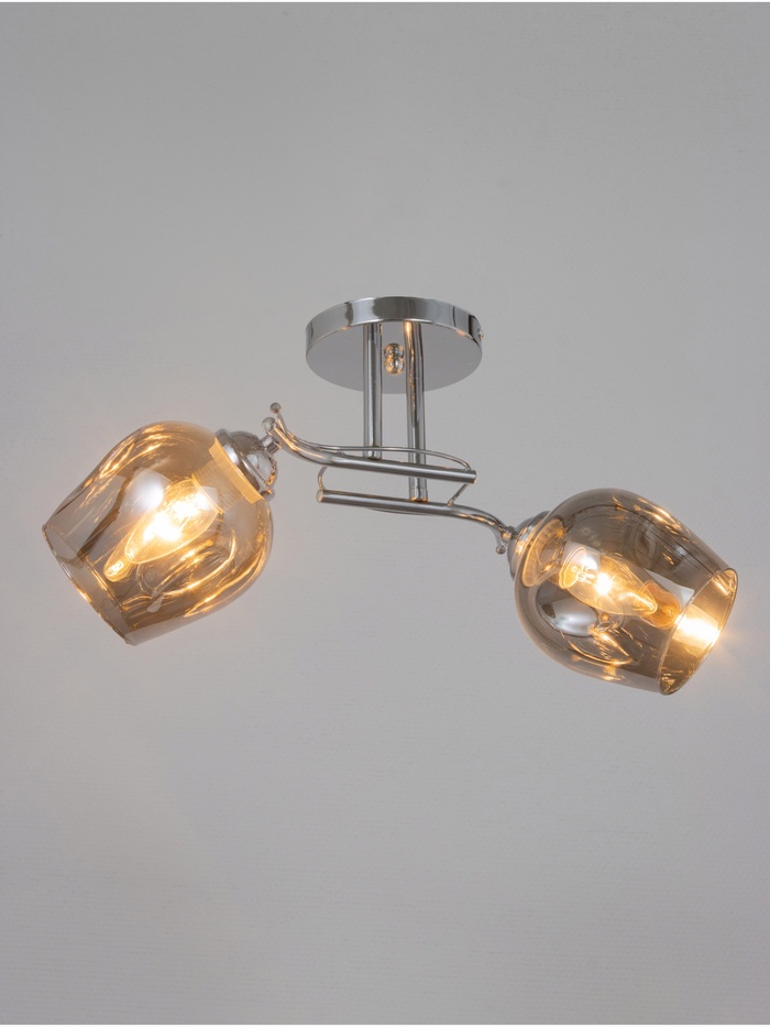 Свет, собранный в хрустальной чистоте. Потолочная люстра с двумя плафонами-«бокалами», хром, E27 – это пересечение классики и лофта, где металл и стекло создают строгую, но тёплую атмосферу. Идеально подходит для прихожей или кухни, где важны и функциональность, и выразительный дизайн.