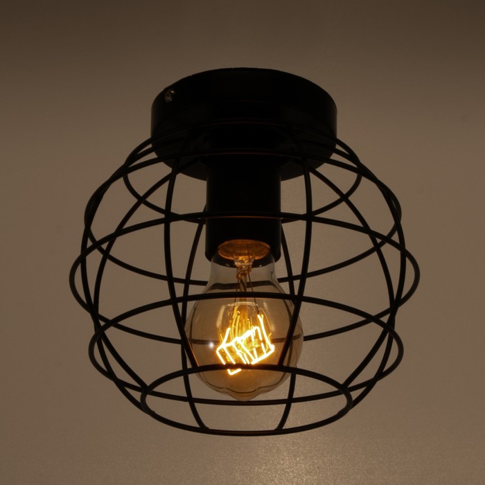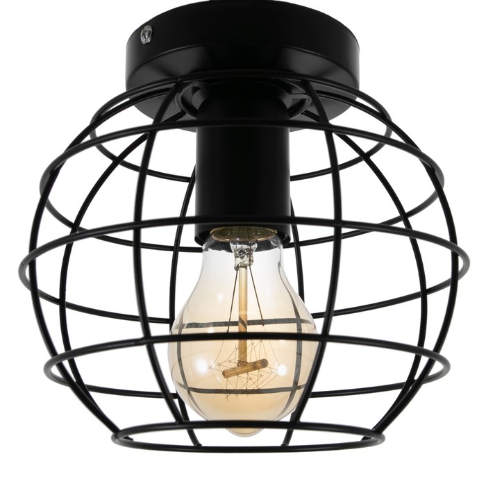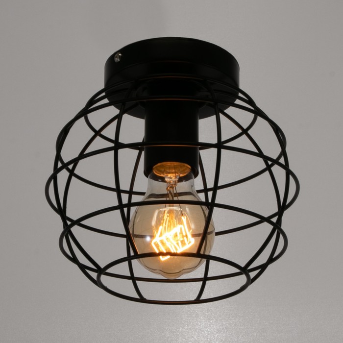 Вид лампы|Накаливания;Количество ламп|1;Стиль|Лофт;Цоколь|E27;Длина, см|18;Ширина, см|18;Высота, см|14;Минимальная высота от потолка, см|14;Максимальная высота от потолка, см|14;Мощность на цоколь, Вт|60;Площадь освещения, м²|60;Степень защиты|IP20;Назначение по помещениям|Прихожая;Назначение по помещениям|Кухня;Назначение по помещениям|Балкон;Назначение по помещениям|Коридор;Назначение по помещениям|Кафе, рестораны;Материал основания|Металл;Цвет основания|Чёрный;Тип рассеивателя|Плафон;Тип подвеса|Без подвеса (потолочный);Оттенок рассеивателя|Тёмные тона;Материал рассеивателя|Металл;Управление светильником|Без пульта;Подходит для натяжных потолков|Да (при использования светодиодных ламп);Плоская|Нет;Тип крепления|На планку;Форма рассеивателя|Полушар;Направление рассеивателя|Вниз;Цвет рассеивателя|Чёрный;Стиль|Лофт;Тип источника освещения|Лампа не в комплекте;