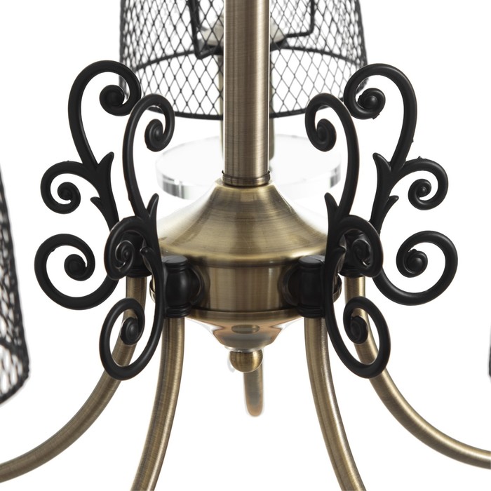 Вид лампы|Накаливания;Количество ламп|5;Стиль|Классика;Цоколь|E14;Высота, см|20;Площадь освещения, м²|10;Мощность на цоколь, Вт|40;Степень защиты|IP20;Назначение по помещениям|Гостиная;Назначение по помещениям|Кухня;Назначение по помещениям|Прихожая;Назначение по помещениям|Спальня;Материал основания|Металл;Цвет основания|Золотой;Тип рассеивателя|Абажур;Тип подвеса|Цепь;Оттенок рассеивателя|Тёмные тона;Материал рассеивателя|Металл;Управление светильником|Без пульта;Подходит для натяжных потолков|Да (при использования светодиодных ламп);Плоская|Нет;Тип крепления|Под крюк;Форма рассеивателя|Трапеция;Направление рассеивателя|Вверх;Цвет рассеивателя|Чёрный;Стиль|Классика;Тип источника освещения|Лампа не в комплекте;