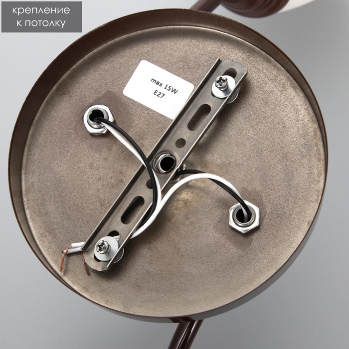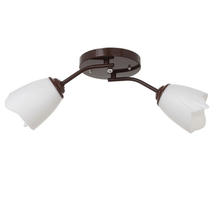 Вид лампы|Энергосберегающая;Количество ламп|2;Стиль|Эконом;Цоколь|E27;Длина, см|27;Ширина, см|19;Высота, см|13;Площадь освещения, м²|8;Минимальная высота от потолка, см|13;Максимальная высота от потолка, см|13;Мощность на цоколь, Вт|15;Степень защиты|IP20;Назначение по помещениям|Спальня;Назначение по помещениям|Детская;Назначение по помещениям|Кухня;Назначение по помещениям|Гостиная;Назначение по помещениям|Прихожая;Назначение по помещениям|Кафе, рестораны;Материал основания|Металл;Цвет основания|Коричневый;Тип рассеивателя|Плафон;Тип подвеса|Без подвеса (потолочный);Оттенок рассеивателя|Светлые тона;Материал рассеивателя|Пластик;Управление светильником|Без пульта;Подходит для натяжных потолков|Да (при использования светодиодных ламп);Плоская|Нет;Тип крепления|На планку;Форма рассеивателя|Конусный;Направление рассеивателя|В стороны;Цвет рассеивателя|Белый;Стиль|Минимализм;Тип источника освещения|Лампа не в комплекте;