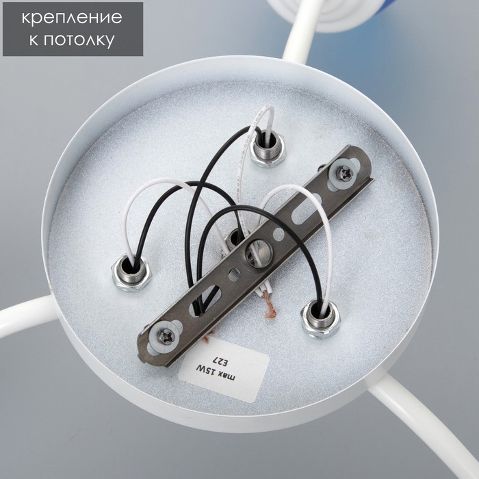 Вид лампы|Светодиодная;Количество ламп|3;Стиль|Эконом;Цоколь|E27;Длина, см|22;Ширина, см|17;Высота, см|13;Площадь освещения, м²|10;Минимальная высота от потолка, см|13;Максимальная высота от потолка, см|13;Мощность на цоколь, Вт|15;Степень защиты|IP20;Назначение по помещениям|Кафе, рестораны;Назначение по помещениям|Детская;Назначение по помещениям|Кухня;Назначение по помещениям|Спальня;Назначение по помещениям|Гостиная;Назначение по помещениям|Прихожая;Материал основания|Металл;Цвет основания|Белый;Тип рассеивателя|Плафон;Тип подвеса|Без подвеса (потолочный);Оттенок рассеивателя|Цветные;Материал рассеивателя|Пластик;Управление светильником|Без пульта;Подходит для натяжных потолков|Да (при использования светодиодных ламп);Плоская|Нет;Тип крепления|На планку;Форма рассеивателя|Конусный;Направление рассеивателя|В стороны;Цвет рассеивателя|Бирюзовый;Стиль|Минимализм;Стиль|Детский;Тип источника освещения|Лампа не в комплекте;