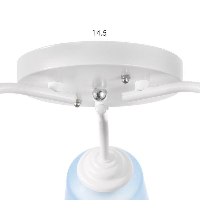 Вид лампы|Светодиодная;Количество ламп|3;Цоколь|E27;Длина, см|22;Ширина, см|17;Высота, см|13;Гарантийный срок, мес.|6;Площадь освещения, м²|9;Минимальная высота от потолка, см|13;Максимальная высота от потолка, см|13;Мощность на цоколь, Вт|15;Степень защиты|IP20;Назначение по помещениям|Спальня;Назначение по помещениям|Прихожая;Назначение по помещениям|Гостиная;Назначение по помещениям|Кухня;Назначение по помещениям|Кафе, рестораны;Назначение по помещениям|Детская;Материал основания|Металл;Цвет основания|Белый;Тип рассеивателя|Плафон;Тип подвеса|Без подвеса (потолочный);Оттенок рассеивателя|Цветные;Материал рассеивателя|Пластик;Управление светильником|Без пульта;Подходит для натяжных потолков|Да (при использования светодиодных ламп);Плоская|Нет;Тип крепления|На планку;Форма рассеивателя|Конусный;Направление рассеивателя|В стороны;Направление рассеивателя|Вниз;Цвет рассеивателя|Бирюзовый;Стиль|Минимализм;Стиль|Детский;Тип источника освещения|Лампа не в комплекте;