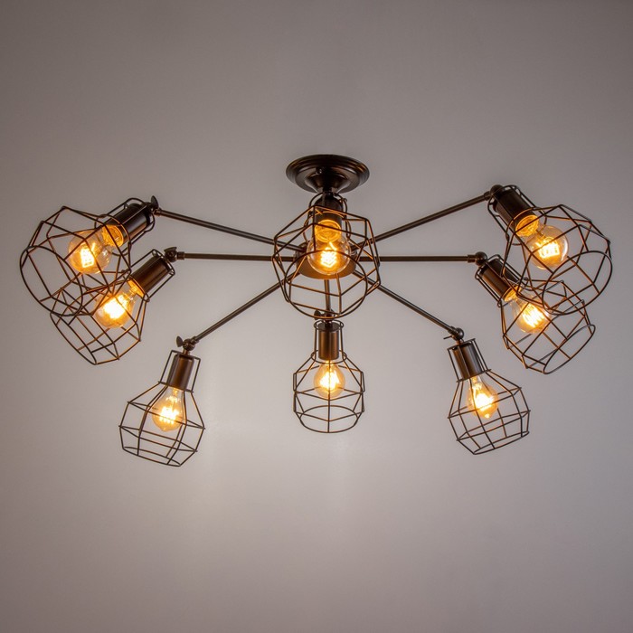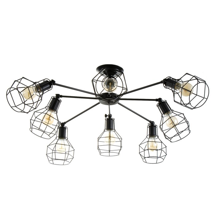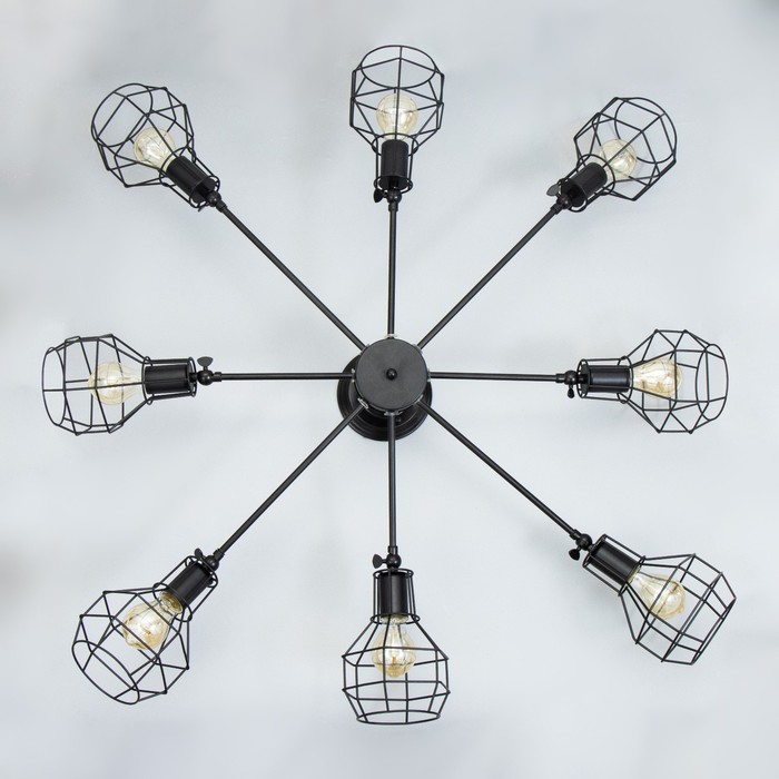 Вид лампы|Накаливания;Количество ламп|8;Стиль|Лофт;Цоколь|E27;Длина, см|80;Ширина, см|80;Высота, см|25;Площадь освещения, м²|16;Минимальная высота от потолка, см|25;Максимальная высота от потолка, см|25;Мощность на цоколь, Вт|40;Степень защиты|IP20;Назначение по помещениям|Спальня;Назначение по помещениям|Кухня;Назначение по помещениям|Гостиная;Назначение по помещениям|Кафе, рестораны;Назначение по помещениям|Прихожая;Материал основания|Металл;Цвет основания|Чёрный;Тип рассеивателя|Плафон;Тип подвеса|Штанга;Оттенок рассеивателя|Тёмные тона;Материал рассеивателя|Металл;Управление светильником|Без пульта;Подходит для натяжных потолков|Да (при использования светодиодных ламп);Плоская|Нет;Тип крепления|На планку;Форма рассеивателя|Многогранник;Направление рассеивателя|Вниз;Цвет рассеивателя|Чёрный;Стиль|Лофт;Тип источника освещения|Лампа не в комплекте;