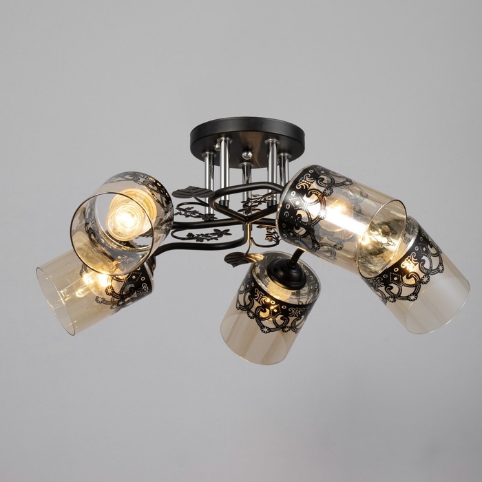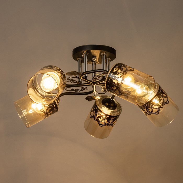• Пять плафонов с цоколем Е27: Поддерживает установку ламп накаливания до 40 Вт или светодиодных аналогов. Освещает пространство до 15 м?, подходит для гостиных, кухонь и спален.