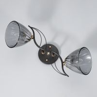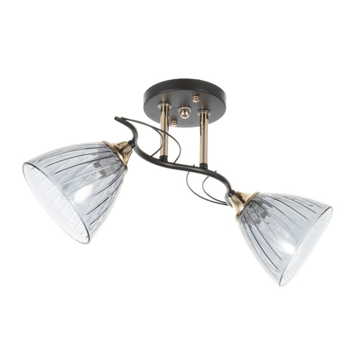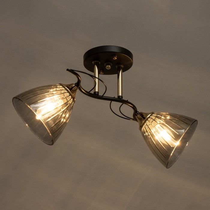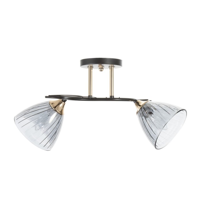 Вид лампы|Накаливания;Количество ламп|2;Стиль|Эконом;Цоколь|E27;Длина, см|48;Ширина, см|18;Высота, см|24;Площадь освещения, м²|6;Минимальная высота от потолка, см|24;Максимальная высота от потолка, см|24;Мощность на цоколь, Вт|40;Степень защиты|IP20;Назначение по помещениям|Гостиная;Назначение по помещениям|Спальня;Материал основания|Металл;Цвет основания|Золотой;Цвет основания|Чёрный;Тип рассеивателя|Плафон;Тип подвеса|Штанга;Материал рассеивателя|Стекло;Управление светильником|Без пульта;Подходит для натяжных потолков|Да (при использования светодиодных ламп);Тип крепления|На планку;Форма рассеивателя|Конусный;Цвет рассеивателя|Тонированный;Стиль|Модерн;Тип источника освещения|Лампа не в комплекте;