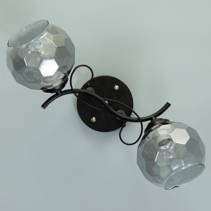 Вид лампы|Накаливания;Количество ламп|2;Стиль|Модерн и хайтек;Цоколь|E27;Длина, см|33;Ширина, см|23;Высота, см|26;Площадь освещения, м²|4;Мощность на цоколь, Вт|40;Степень защиты|IP20;Назначение по помещениям|Прихожая;Назначение по помещениям|Спальня;Назначение по помещениям|Кухня;Назначение по помещениям|Кафе, рестораны;Материал основания|Металл;Цвет основания|Чёрный;Тип рассеивателя|Плафон;Тип подвеса|Штанга;Материал рассеивателя|Стекло;Управление светильником|Без пульта;Подходит для натяжных потолков|Да (при использования светодиодных ламп);Тип крепления|На планку;Форма рассеивателя|Полушар;Цвет рассеивателя|Серый;Стиль|Минимализм;Тип источника освещения|Лампа не в комплекте;