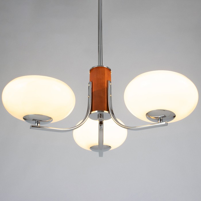 Вид лампы|Накаливания;Количество ламп|3;Стиль|Классика;Цоколь|E27;Длина, см|52;Ширина, см|52;Высота, см|60;Площадь освещения, м²|6;Мощность на цоколь, Вт|40;Минимальная высота от потолка, см|60;Максимальная высота от потолка, см|60;Степень защиты|IP20;Назначение по помещениям|Кафе, рестораны;Назначение по помещениям|Коридор;Назначение по помещениям|Спальня;Материал основания|Дерево;Материал основания|Металл;Цвет основания|Хром;Цвет основания|Коричневый;Тип рассеивателя|Плафон;Тип подвеса|Штанга;Материал рассеивателя|Стекло;Управление светильником|Без пульта;Подходит для натяжных потолков|Да (при использования светодиодных ламп);Тип крепления|На планку;Форма рассеивателя|Бокал;Цвет рассеивателя|Бежевый;Стиль|Ретро;Тип источника освещения|Лампа не в комплекте;