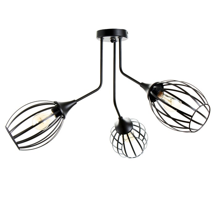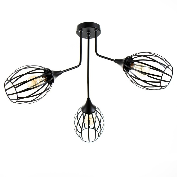 Свет, который не прячется, а работает на стиль! Потолочная люстра с тремя лампами и чёрным каркасом — это современное освещение для тех, кто ценит индустриальный лофт и мощный световой поток. Подходит для гостиной, кухни, спальни или прихожей площадью до 9 м?. Тёмные овальные плафоны и штанговая конструкция делают её частью урбанистического интерьера.