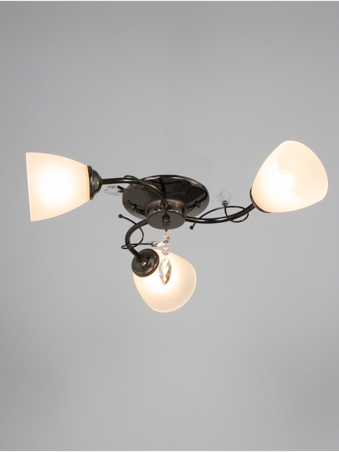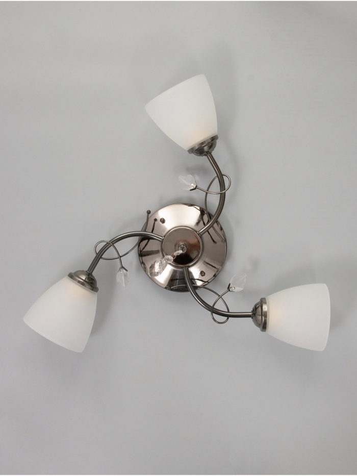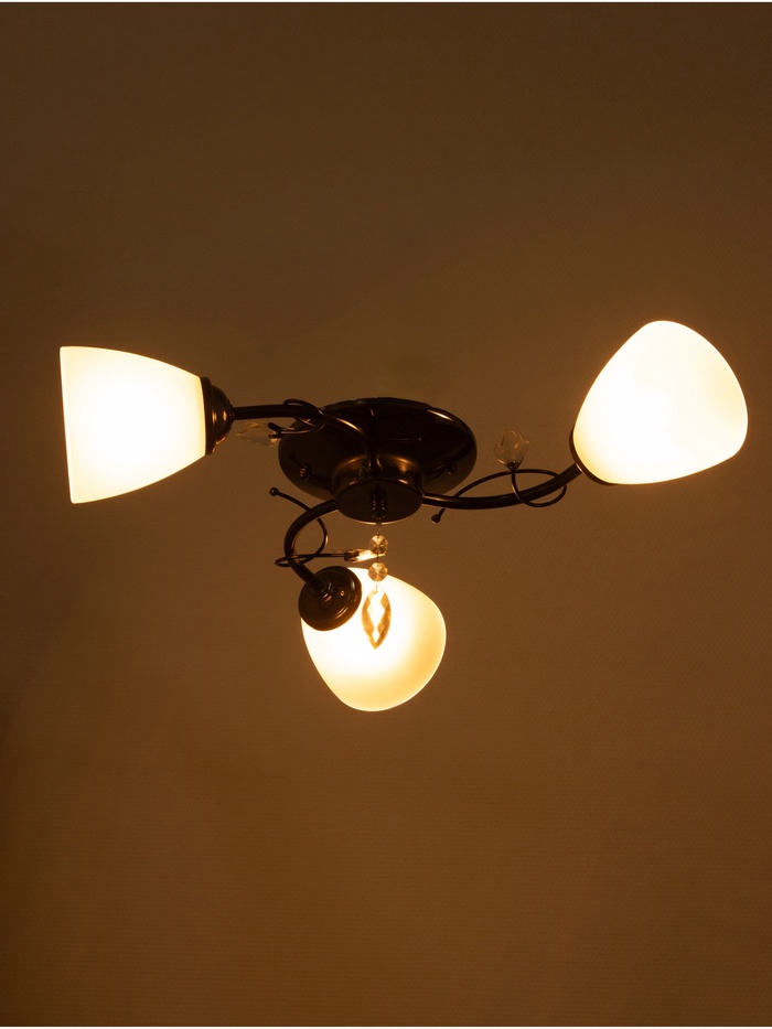 - Мощное освещение: Три лампы формата E27 (до 40 Вт каждая) обеспечивают световой поток 1260–2800 лм, достаточный для помещений площадью до 6 м?. Белые стеклянные конусы равномерно рассеивают свет, создавая комфортную атмосферу без резких теней.