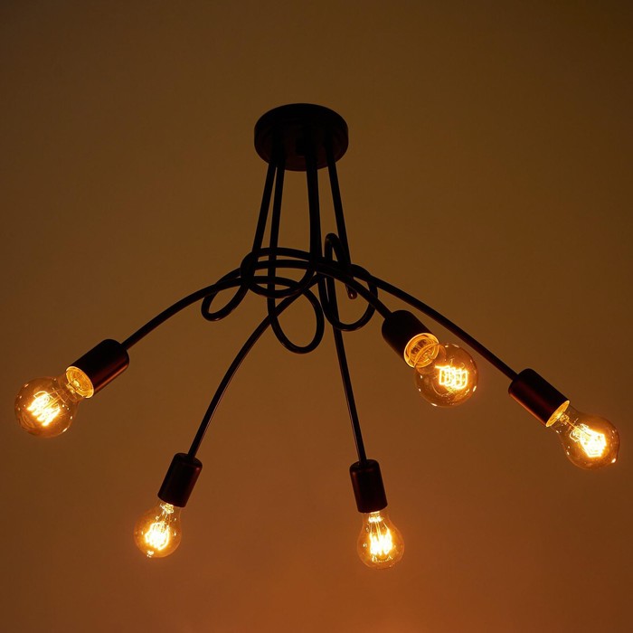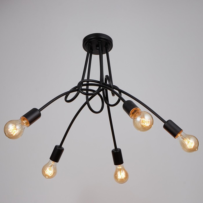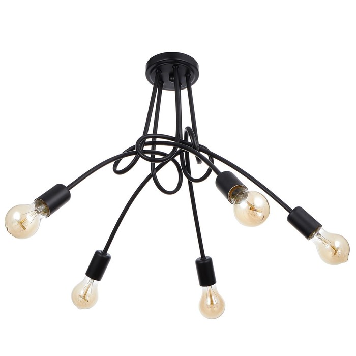 Вид лампы|Накаливания;Количество ламп|5;Стиль|Лофт;Цоколь|E27;Длина, см|54;Ширина, см|54;Высота, см|40;Площадь освещения, м²|10;Мощность на цоколь, Вт|40;Минимальная высота от потолка, см|40;Максимальная высота от потолка, см|40;Степень защиты|IP20;Назначение по помещениям|Спальня;Назначение по помещениям|Офис;Назначение по помещениям|Кафе, рестораны;Назначение по помещениям|Гостиная;Материал основания|Металл;Цвет основания|Чёрный;Тип рассеивателя|Без плафонов;Тип подвеса|Без подвеса (потолочный);Управление светильником|Без пульта;Подходит для натяжных потолков|Да (при использования светодиодных ламп);Плоская|Нет;Тип крепления|На планку;Направление рассеивателя|В стороны;Направление рассеивателя|Вниз;Цвет рассеивателя|Чёрный;Стиль|Лофт;Стиль|Современный;Стиль|Минимализм;Стиль|Модерн;Тип источника освещения|Лампа не в комплекте;