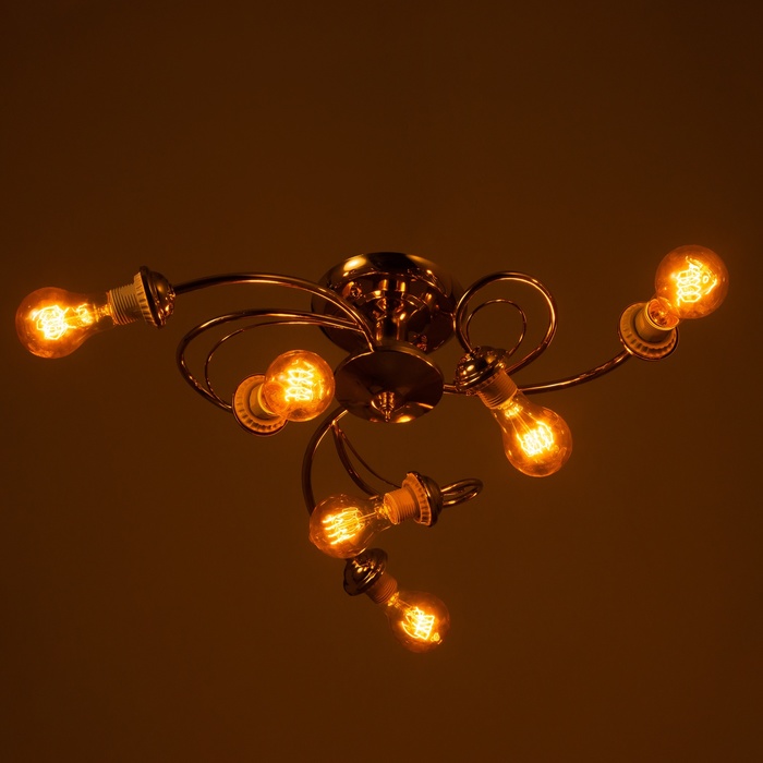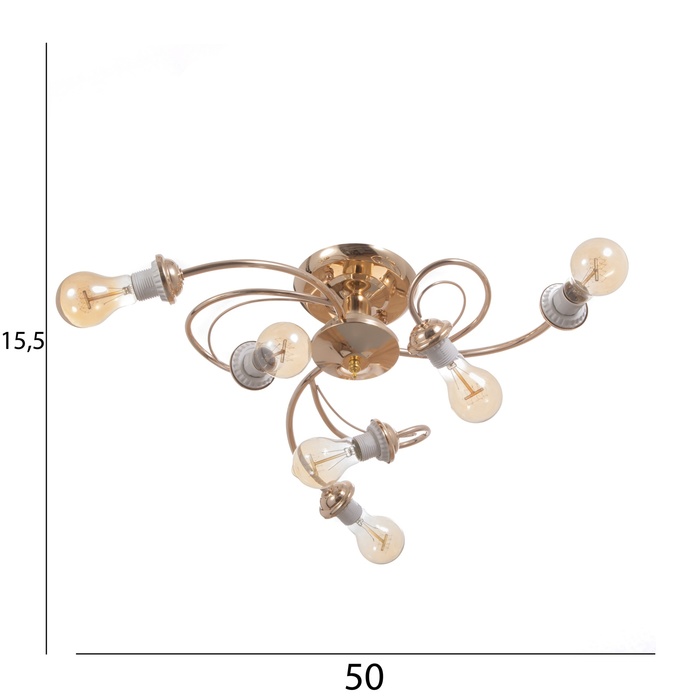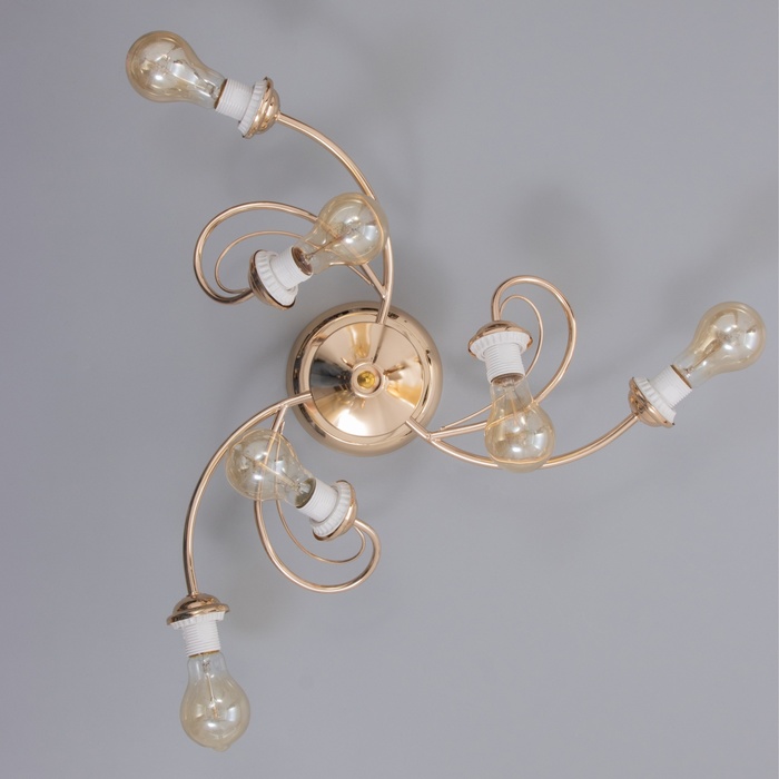 Вид лампы|Накаливания;Количество ламп|6;Стиль|Эконом;Цоколь|E27;Длина, см|50;Ширина, см|50;Высота, см|15.5;Минимальная высота от потолка, см|15.5;Максимальная высота от потолка, см|15.5;Мощность на цоколь, Вт|40;Степень защиты|IP20;Назначение по помещениям|Гостиная;Назначение по помещениям|Большой зал;Материал основания|Металл;Цвет основания|Золотой;Тип рассеивателя|Без плафонов;Особенности светильника|Ветки;Тип подвеса|Без подвеса (потолочный);Управление светильником|Без выключателя;Подходит для натяжных потолков|Да (при использования светодиодных ламп);Плоская|Нет;Тип крепления|На планку;Направление рассеивателя|В стороны;Стиль|Классика;Тип источника освещения|Лампа не в комплекте;