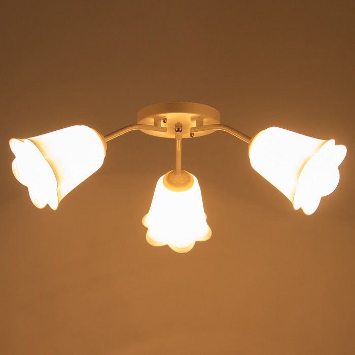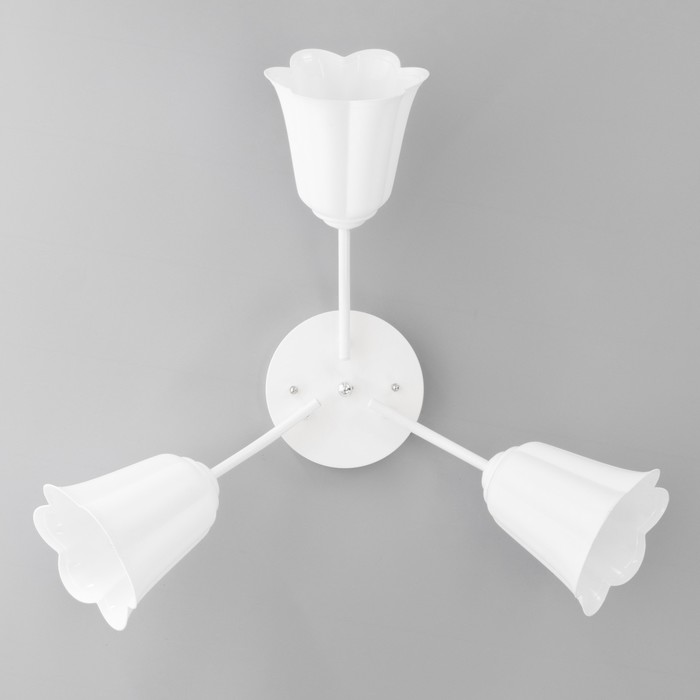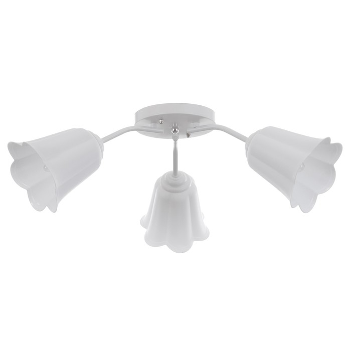 Вид лампы|Накаливания;Количество ламп|3;Стиль|Эконом;Цоколь|E27;Длина, см|22;Ширина, см|16.5;Высота, см|13.5;Площадь освещения, м²|9;Минимальная высота от потолка, см|13.5;Максимальная высота от потолка, см|13.5;Мощность на цоколь, Вт|15;Степень защиты|IP20;Назначение по помещениям|Спальня;Назначение по помещениям|Гостиная;Назначение по помещениям|Прихожая;Назначение по помещениям|Кухня;Назначение по помещениям|Детская;Назначение по помещениям|Кафе, рестораны;Материал основания|Металл;Цвет основания|Белый;Тип рассеивателя|Плафон;Тип подвеса|Без подвеса (потолочный);Оттенок рассеивателя|Светлые тона;Материал рассеивателя|Пластик;Управление светильником|Без пульта;Цоколь|E27;Подходит для натяжных потолков|Да (при использования светодиодных ламп);Плоская|Нет;Тип крепления|На планку;Форма рассеивателя|Конусный;Направление рассеивателя|Вниз;Направление рассеивателя|В стороны;Цвет рассеивателя|Белый;Стиль|Минимализм;Стиль|Прованс;Тип источника освещения|Лампа не в комплекте;