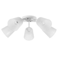 Вид лампы|Накаливания;Количество ламп|5;Стиль|Эконом;Цоколь|E27;Длина, см|27;Ширина, см|18;Высота, см|13;Минимальная высота от потолка, см|13;Максимальная высота от потолка, см|13;Мощность на цоколь, Вт|15;Площадь освещения, м²|15;Степень защиты|IP20;Назначение по помещениям|Спальня;Назначение по помещениям|Кухня;Назначение по помещениям|Гостиная;Назначение по помещениям|Прихожая;Назначение по помещениям|Кафе, рестораны;Назначение по помещениям|Детская;Материал основания|Металл;Цвет основания|Белый;Тип рассеивателя|Плафон;Тип подвеса|Без подвеса (потолочный);Оттенок рассеивателя|Светлые тона;Материал рассеивателя|Пластик;Управление светильником|Без пульта;Цоколь|E27;Подходит для натяжных потолков|Да (при использования светодиодных ламп);Плоская|Нет;Тип крепления|На планку;Форма рассеивателя|Цилиндр;Направление рассеивателя|Вниз;Направление рассеивателя|В стороны;Цвет рассеивателя|Белый;Стиль|Минимализм;Тип источника освещения|Лампа не в комплекте;