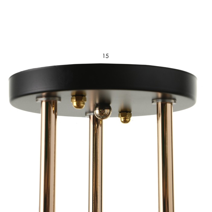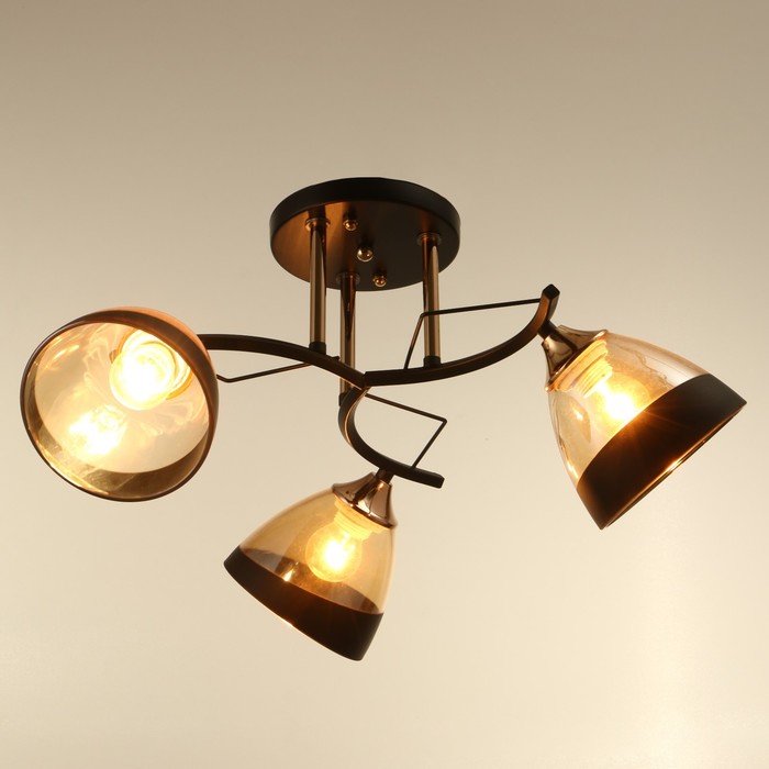 Вид лампы|Накаливания;Количество ламп|3;Стиль|Эконом;Цоколь|E27;Длина, см|60;Ширина, см|60;Высота, см|26;Площадь освещения, м²|6;Мощность на цоколь, Вт|40;Степень защиты|IP20;Назначение по помещениям|Гостиная;Назначение по помещениям|Прихожая;Назначение по помещениям|Спальня;Назначение по помещениям|Кухня;Материал основания|Металл;Цвет основания|Чёрный;Цвет основания|Золотой;Тип рассеивателя|Плафон;Тип подвеса|Штанга;Оттенок рассеивателя|Цветные;Оттенок рассеивателя|Тёмные тона;Материал рассеивателя|Стекло;Управление светильником|Без пульта;Подходит для натяжных потолков|Да (при использования светодиодных ламп);Плоская|Нет;Тип крепления|На планку;Форма рассеивателя|Конусный;Направление рассеивателя|Вниз;Цвет рассеивателя|Чёрный;Цвет рассеивателя|Янтарный;Стиль|Современный;Стиль|Модерн;Тип источника освещения|Лампа не в комплекте;