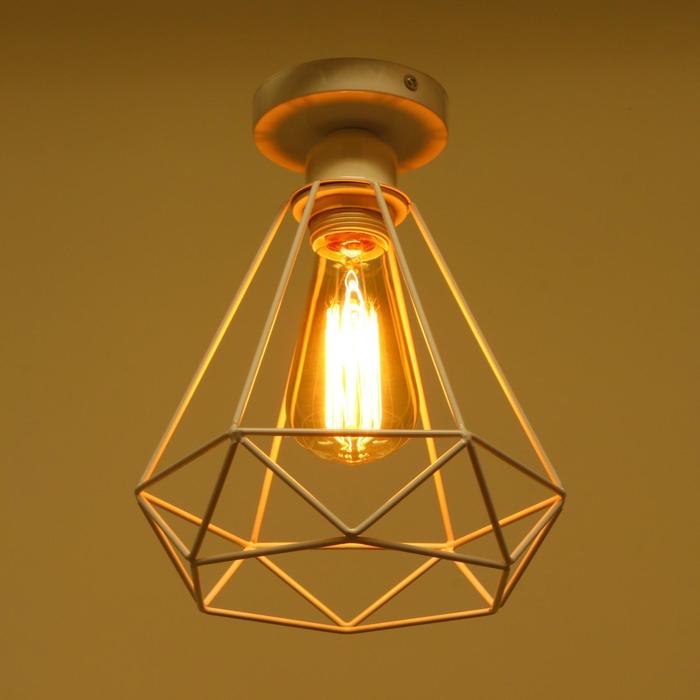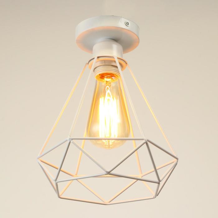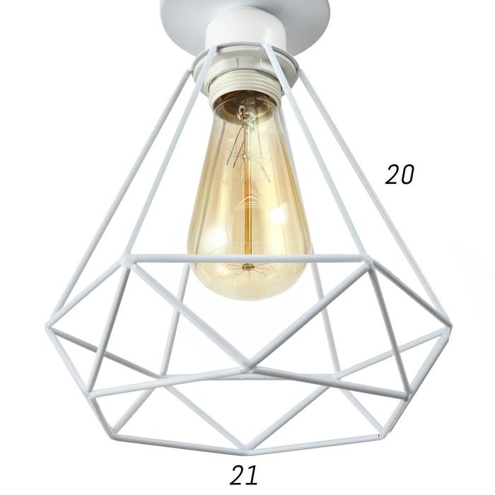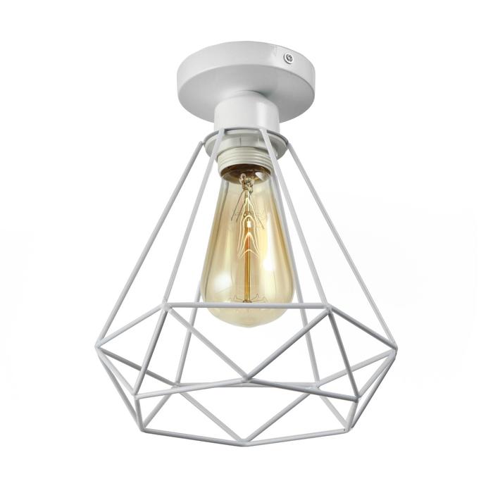 Вид лампы|Накаливания;Количество ламп|1;Стиль|Лофт;Цоколь|E27;Длина, см|16;Ширина, см|16;Высота, см|18;Площадь освещения, м²|3;Минимальная высота от потолка, см|18;Максимальная высота от потолка, см|18;Мощность на цоколь, Вт|60;Степень защиты|IP20;Назначение по помещениям|Кафе, рестораны;Назначение по помещениям|Гостиная;Назначение по помещениям|Кухня;Назначение по помещениям|Спальня;Назначение по помещениям|Прихожая;Материал основания|Металл;Цвет основания|Белый;Тип рассеивателя|Плафон;Тип подвеса|Без подвеса (потолочный);Оттенок рассеивателя|Светлые тона;Материал рассеивателя|Металл;Управление светильником|Без пульта;Подходит для натяжных потолков|Да (при использования светодиодных ламп);Плоская|Нет;Тип крепления|На планку;Форма рассеивателя|Многогранник;Направление рассеивателя|Вниз;Цвет рассеивателя|Белый;Стиль|Лофт;Стиль|Минимализм;Тип источника освещения|Лампа не в комплекте;