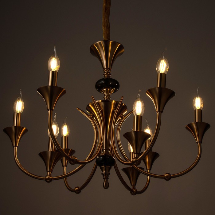 Вид лампы|Накаливания;Количество ламп|9;Стиль|Классика;Цоколь|E14;Длина, см|70;Ширина, см|70;Высота, см|51;Площадь освещения, м²|18;Мощность на цоколь, Вт|40;Степень защиты|IP20;Назначение по помещениям|Прихожая;Назначение по помещениям|Гостиная;Назначение по помещениям|Спальня;Назначение по помещениям|Кухня;Материал основания|Металл;Цвет основания|Латунь;Тип рассеивателя|Без плафонов;Тип подвеса|Цепь;Управление светильником|Без пульта;Подходит для натяжных потолков|Да (при использования светодиодных ламп);Плоская|Нет;Тип крепления|Под крюк;Стиль|Классика;Тип источника освещения|Лампа не в комплекте;