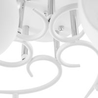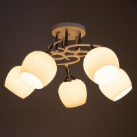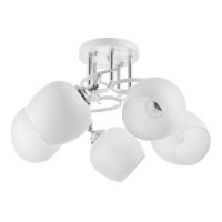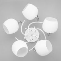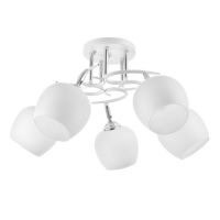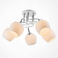 Вид лампы|Накаливания;Количество ламп|5;Стиль|Эконом;Цоколь|E27;Длина, см|58;Ширина, см|58;Высота, см|27;Площадь освещения, м²|8;Мощность на цоколь, Вт|40;Степень защиты|IP20;Назначение по помещениям|Гостиная;Назначение по помещениям|Прихожая;Назначение по помещениям|Спальня;Назначение по помещениям|Кухня;Материал основания|Металл;Цвет основания|Белый;Тип рассеивателя|Плафон;Тип подвеса|Штанга;Оттенок рассеивателя|Светлые тона;Материал рассеивателя|Стекло;Управление светильником|Без пульта;Подходит для натяжных потолков|Да (при использования светодиодных ламп);Плоская|Нет;Тип крепления|На планку;Форма рассеивателя|Полушар;Направление рассеивателя|Вниз;Цвет рассеивателя|Белый;Стиль|Классика;Тип источника освещения|Лампа не в комплекте;