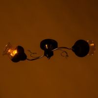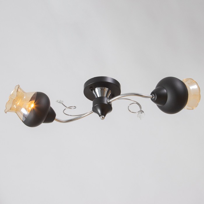 Вид лампы|Накаливания;Количество ламп|2;Стиль|Эконом;Цоколь|E27;Длина, см|53;Ширина, см|20;Высота, см|23;Площадь освещения, м²|4;Минимальная высота от потолка, см|23;Максимальная высота от потолка, см|23;Мощность на цоколь, Вт|40;Степень защиты|IP20;Назначение по помещениям|Спальня;Назначение по помещениям|Гостиная;Материал основания|Металл;Цвет основания|Чёрный;Тип рассеивателя|Плафон;Тип подвеса|Без подвеса (потолочный);Оттенок рассеивателя|Цветные;Оттенок рассеивателя|Тёмные тона;Материал рассеивателя|Стекло;Управление светильником|Без пульта;Подходит для натяжных потолков|Да (при использования светодиодных ламп);Плоская|Нет;Тип крепления|На планку;Форма рассеивателя|Бокал;Направление рассеивателя|В стороны;Цвет рассеивателя|Медовый;Цвет рассеивателя|Чёрный;Стиль|Современный;Тип источника освещения|Лампа не в комплекте;
