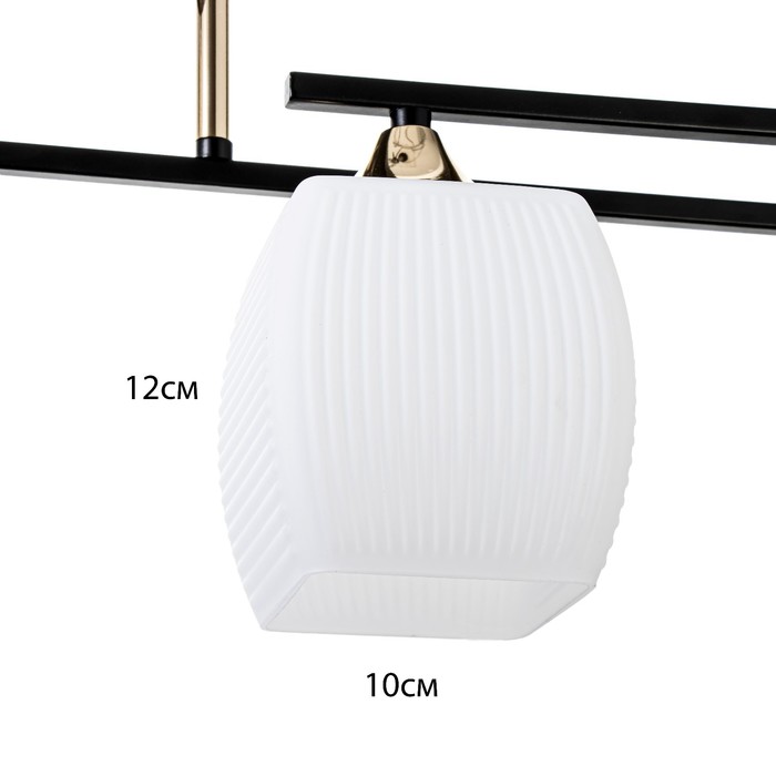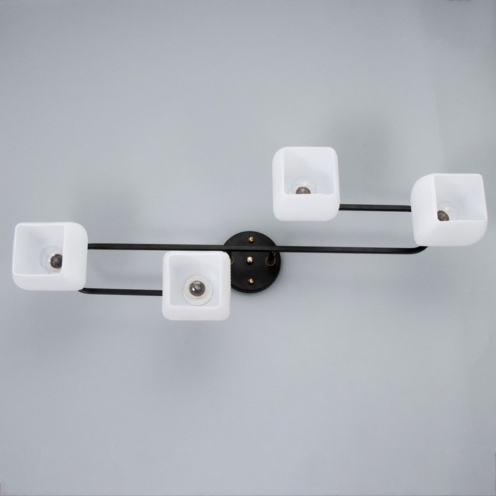 Вид лампы|Накаливания;Количество ламп|4;Стиль|Еврокаркас;Цоколь|E27;Длина, см|79;Ширина, см|27;Высота, см|27.5;Площадь освещения, м²|12;Минимальная высота от потолка, см|27.5;Максимальная высота от потолка, см|27.5;Мощность на цоколь, Вт|40;Степень защиты|IP20;Назначение по помещениям|Гостиная;Назначение по помещениям|Кухня;Назначение по помещениям|Спальня;Материал основания|Металл;Цвет основания|Чёрный;Тип рассеивателя|Плафон;Тип подвеса|Штанга;Оттенок рассеивателя|Светлые тона;Материал рассеивателя|Стекло;Управление светильником|Без пульта;Подходит для натяжных потолков|Да (при использования светодиодных ламп);Тип крепления|На планку;Форма рассеивателя|Квадратный;Цвет рассеивателя|Белый;Стиль|Модерн;Стиль|Современный;Тип источника освещения|Лампа не в комплекте;