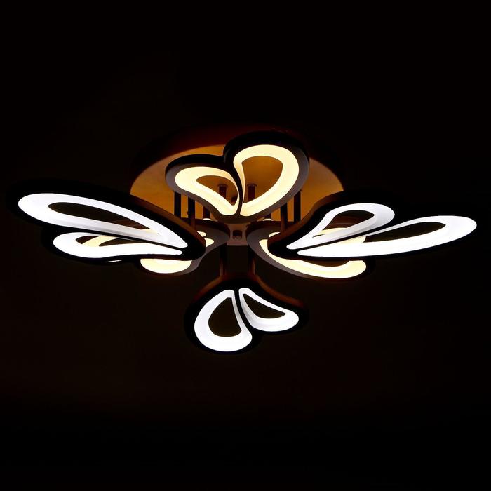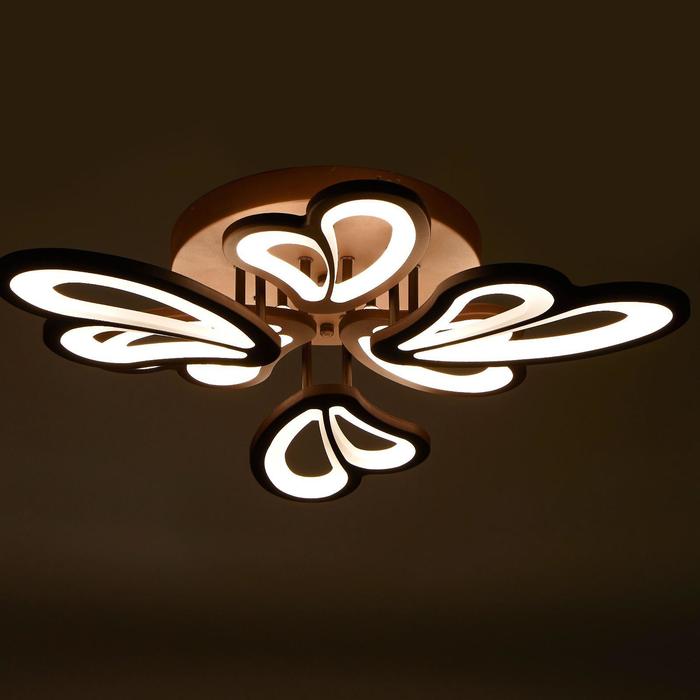 Светодиодный светильник с пультом выполнен в современном стиле. Модная и стильная люстра подойдёт для интерьера детской, гостиной, зала, спальни, прихожей или кухни. С помощью пульта можно плавно регулировать температуру света — от 3 000 до 6 000 К; и яркость — от ночника до полной мощности свечения. Батарейки в комплект не входят.