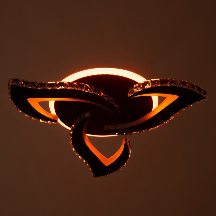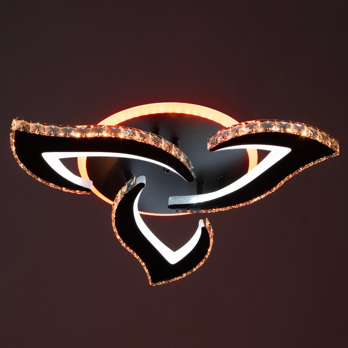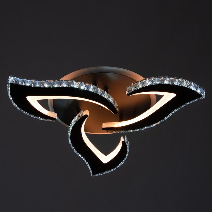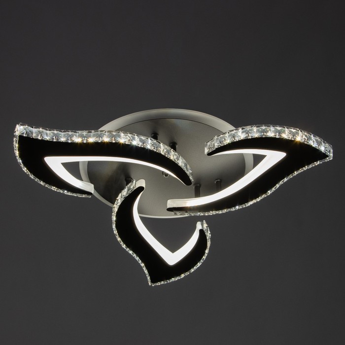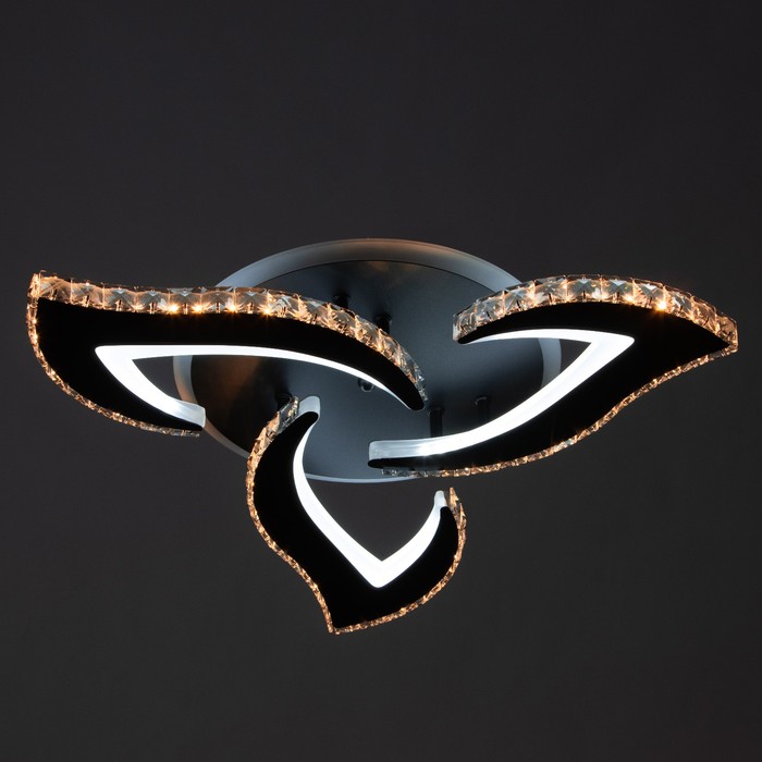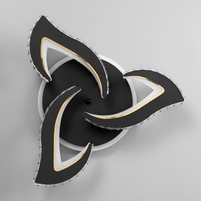 Вид лампы|Светодиодная;Количество ламп|3;Цоколь|Встроенные LED;Длина, см|57;Ширина, см|57;Высота, см|10;Минимальная высота от потолка, см|10;Максимальная высота от потолка, см|10;Площадь освещения, м²|16;Мощность на цоколь, Вт|78;Степень защиты|IP20;Назначение по помещениям|Спальня;Назначение по помещениям|Прихожая;Назначение по помещениям|Кухня;Материал основания|Металл;Цвет основания|Белый;Тип рассеивателя|Без плафонов;Тип подвеса|Штанга;Форма|Цветок;Материал рассеивателя|Металл;Материал рассеивателя|Акрил;Управление светильником|Есть пульт ДУ;Подходит для натяжных потолков|Да (при использования светодиодных ламп);Тип крепления|На планку;Форма рассеивателя|Фигурная;Цвет рассеивателя|Чёрный;Стиль|Минимализм;Стиль|Современный;Тип источника освещения|Встроенная LED;