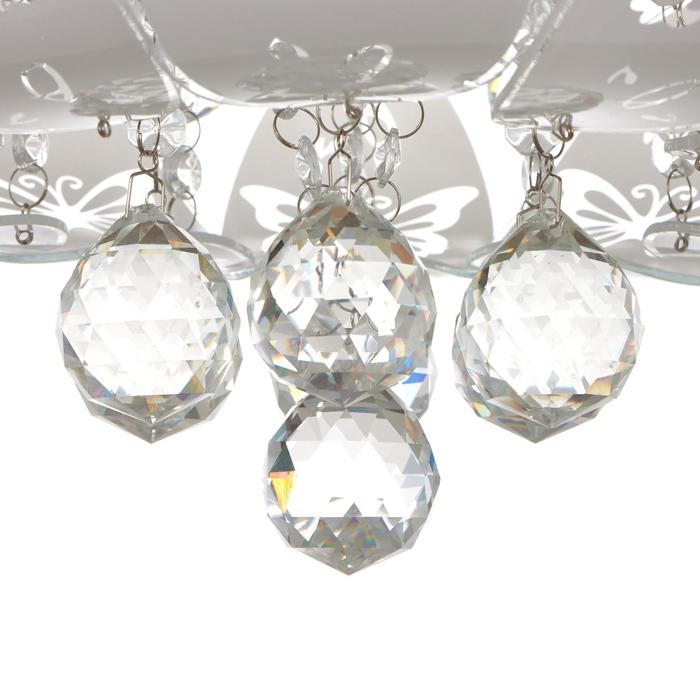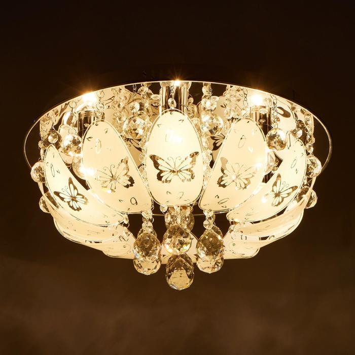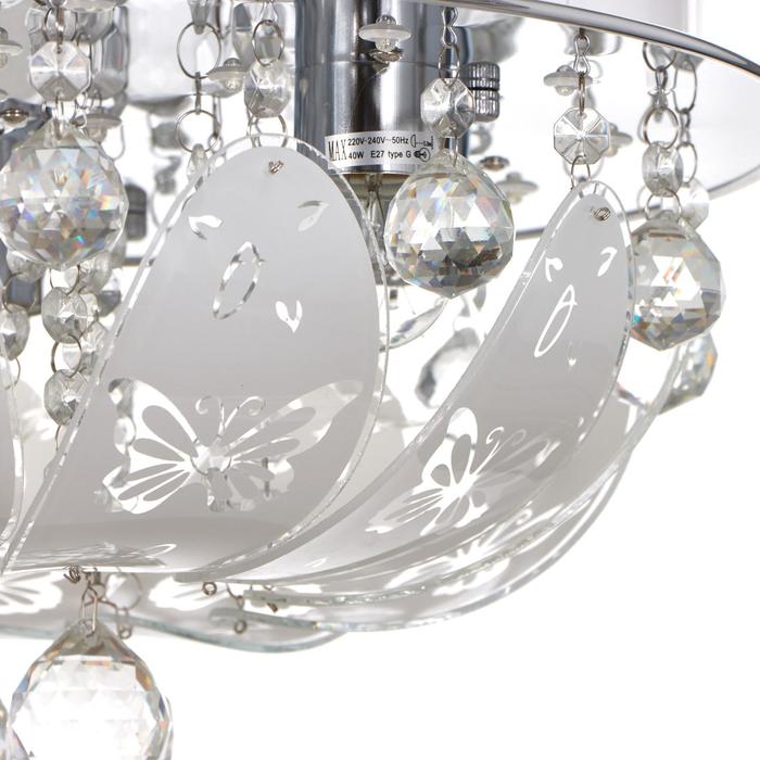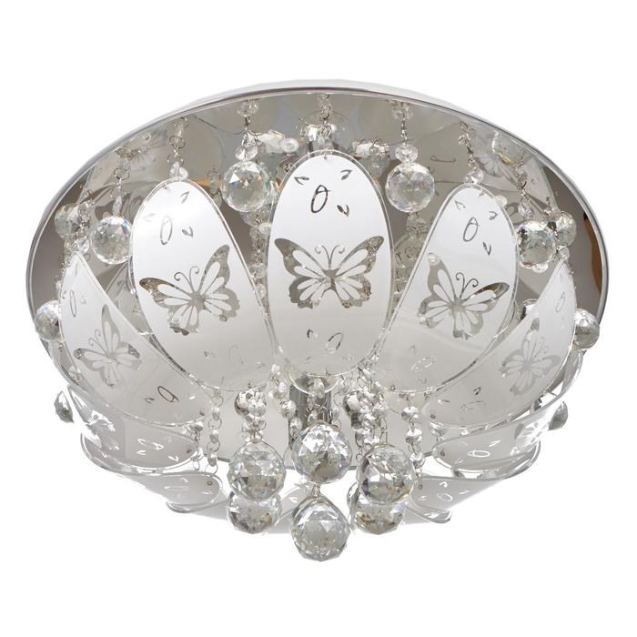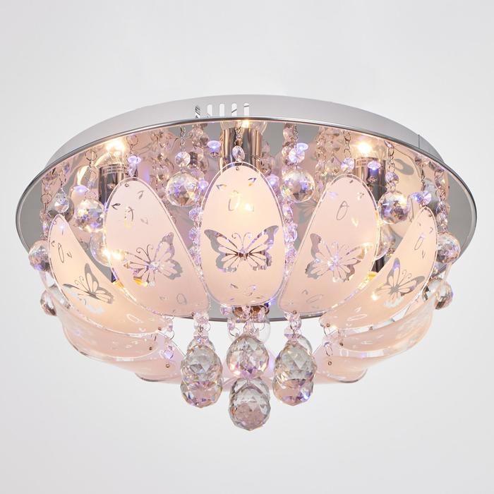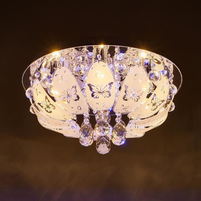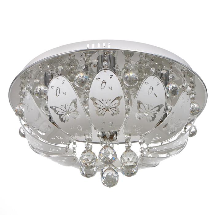 Вид лампы|Накаливания;Количество ламп|7;Стиль|Буше (люстры-торты);Цоколь|E27;Длина, см|45;Ширина, см|45;Высота, см|17;Площадь освещения, м²|14;Минимальная высота от потолка, см|17;Максимальная высота от потолка, см|17;Мощность на цоколь, Вт|40;Степень защиты|IP20;Назначение по помещениям|Кухня;Назначение по помещениям|Гостиная;Назначение по помещениям|Прихожая;Назначение по помещениям|Спальня;Материал основания|Металл;Цвет основания|Хром;Тип рассеивателя|Без плафонов;Тип подвеса|Без подвеса (потолочный);Оттенок рассеивателя|Светлые тона;Форма|Круглая;Материал рассеивателя|Стекло;Управление светильником|Есть пульт ДУ;Подходит для натяжных потолков|Да (при использования светодиодных ламп);Плоская|Нет;Тип крепления|На планку;Форма рассеивателя|Овал;Направление рассеивателя|Вниз;Цвет рассеивателя|Белый;Стиль|Хрусталь;Тип источника освещения|Лампа не в комплекте;