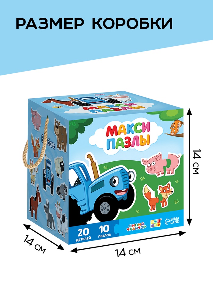 Макси - пазлы «Забавные животные», 10 пазлов, 20 элементов, Синий трактор