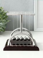 Маятник настольный антистресс «Шары техно: квадрат столбик», 13.5?13.5?11.5 см сегодня пользуется огромной популярностью у наших клиентов. Система состоит из подставки и пяти металлических шариков, которые подвешены на леске. Для активации маятника вам необходимо отвести один шарик в сторону и отпустить его. Затем наблюдайте, как шарики с противоположной стороны начинают двигаться в зеркальном отображении с той же скоростью. Через определенное время шарики останавливаются. Продолжительность движения зависит от размера и веса шариков: чем тяжелее и больше шарики, тем дольше процесс, и наоборот.