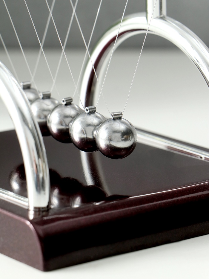 Шары Ньютона — это система, которую изобрел Исаак Ньютон для демонстрации преобразования энергии. Он показал, что при отсутствии противодействующей силы шары могут двигаться вечно, но в данной ситуации это недостижимо. Шары Ньютона еще называют вечным двигателем, они были признаны в конце 20 века, и в основном использовались для релаксации, в психотерапии и для подсчета времени.