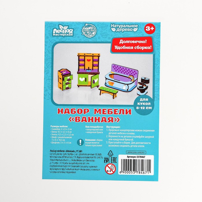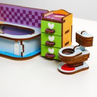 Создайте миниатюру настоящей комнаты из деревянных деталей. Предметы мебели сделаны из экологически натурального и безопасного материала. Изделия выглядят очень реалистично и идеально подойдут как для игр малыша, так и в качестве декора для детской.