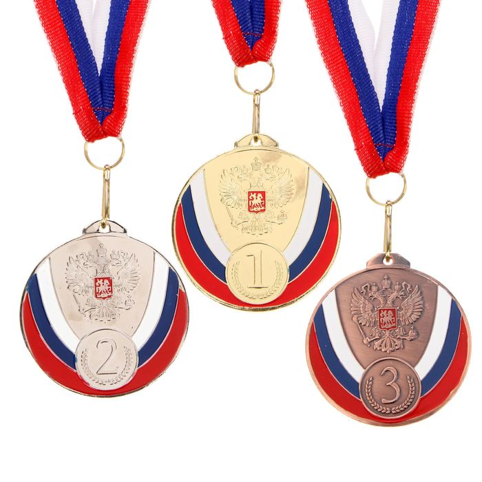 Медаль призовая 050, d= 7 см. 1 место, триколор. Цвет золото. С лентой