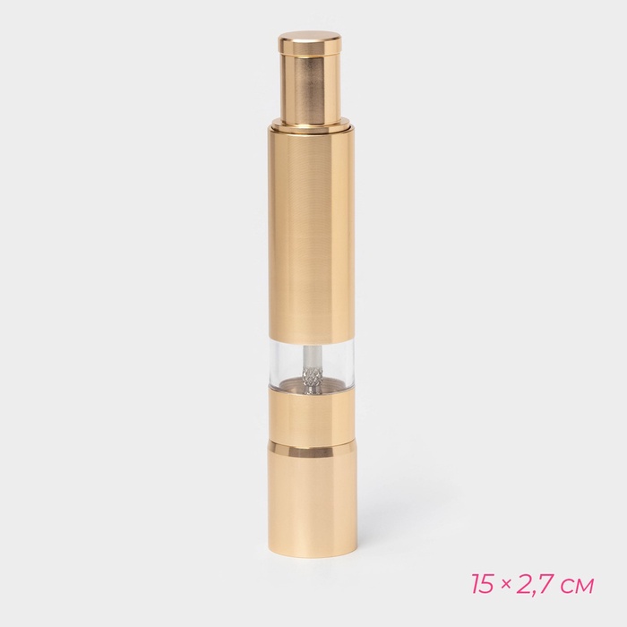 Мельница для специй «Элит», 15?2.7 см, металлический механизм, цвет золотой — изящный и практичный аксессуар для каждого увлечённого кулинара.