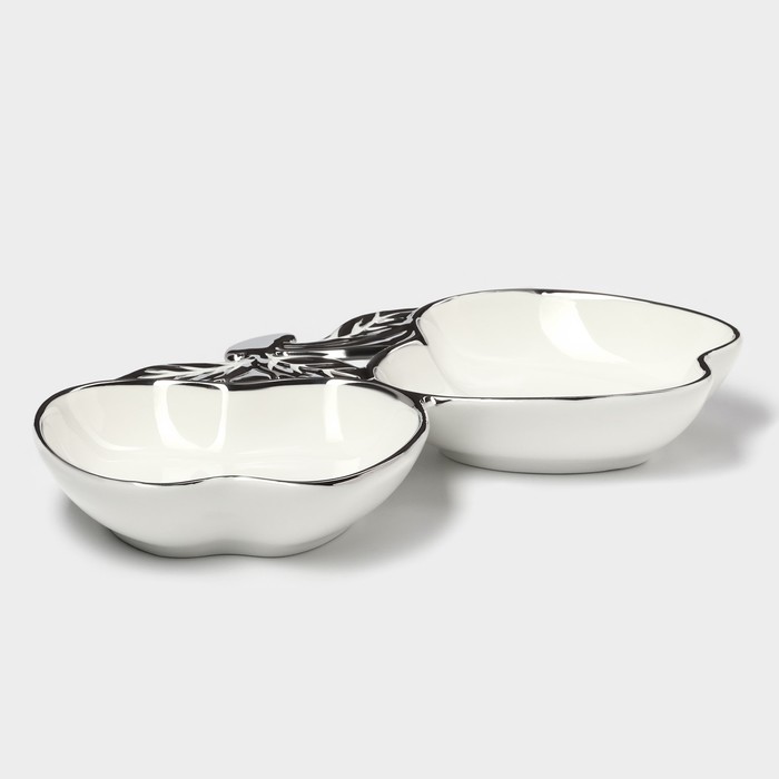 Менажница 2 ячейки «Яблоки», 25.5?14.5?3,5 см, керамика, белая